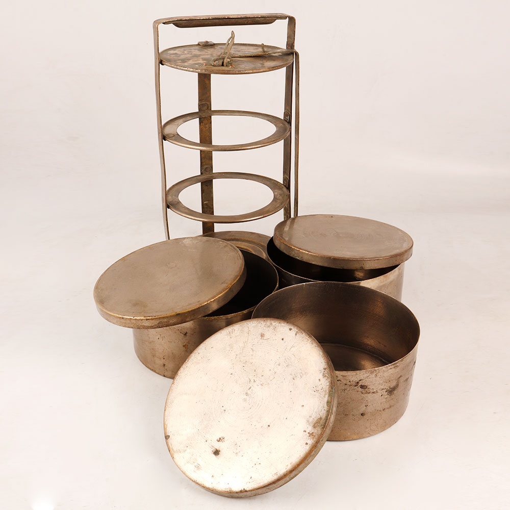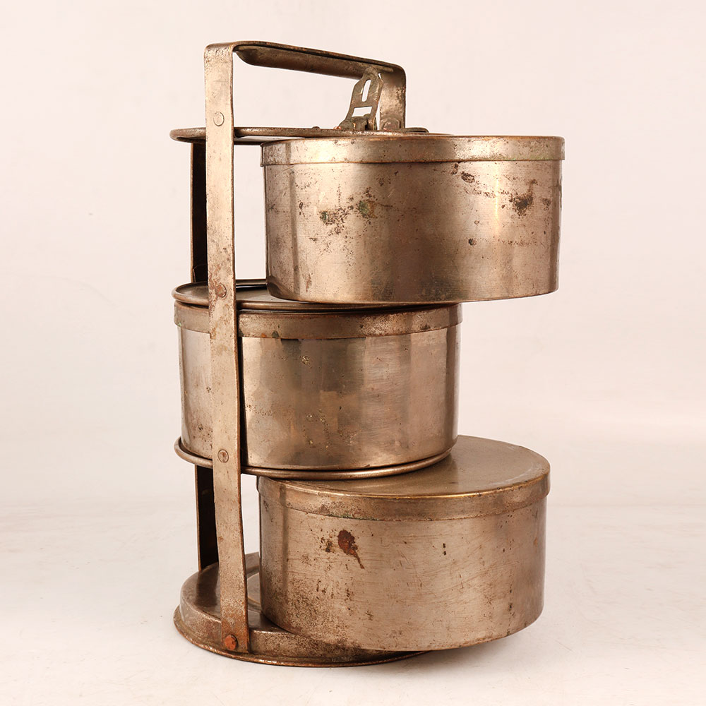 Buy a vintage brass tiffin or lunch box online that enhances your space with its timeless charm. With three spacious compartments, this used item boasts both functionality and aesthetic appeal. Crafted from high-quality brass, its antique brown finish exudes an aura of nostalgia and elegance. Handmade by highly skilled and experienced Indian craftsmen, this piece carries the legacy of traditional craftsmanship. This vintage Tiffin can be seamlessly incorporated into various settings – whether it's your home, office, restaurant, hotel, or cafe. Its exquisite design invites conversations and adds a touch of history to any space. Use it as a captivating decoration or proudly display it at exhibitions to showcase its unique character. As a valuable addition to your vintage collection, it embodies the bygone eras aesthetics. Celebrate special occasions by gifting this Tiffin to your family, friends or relatives. Its timeless appeal makes it an ideal present for festive or auspicious events.