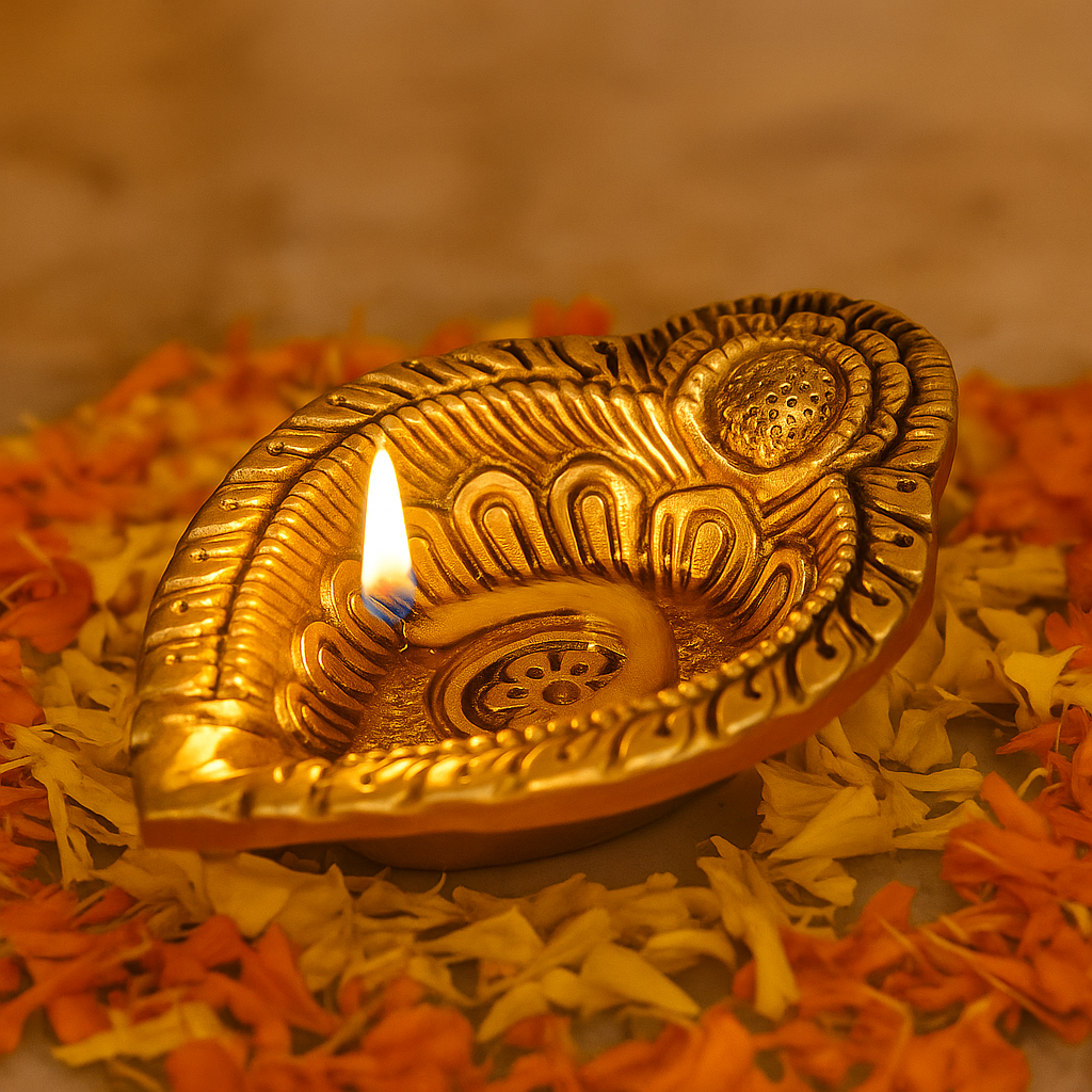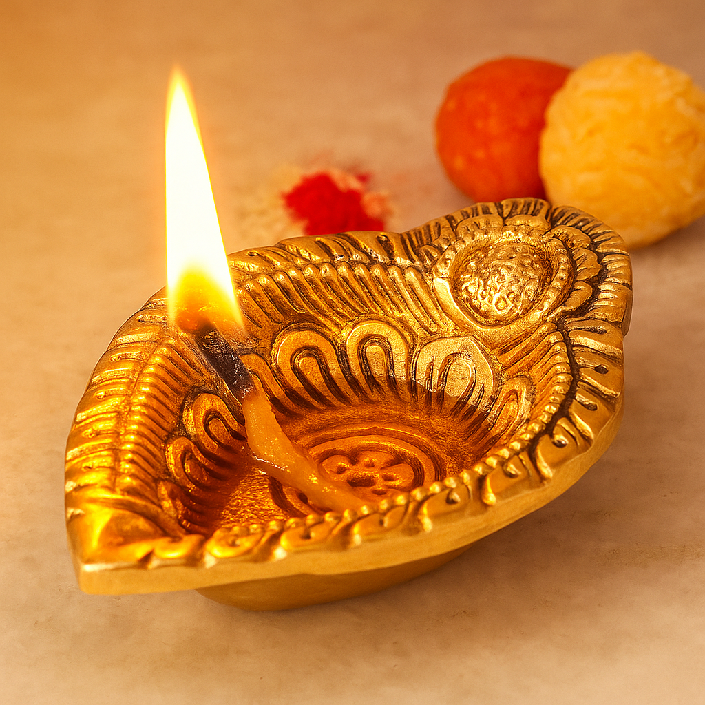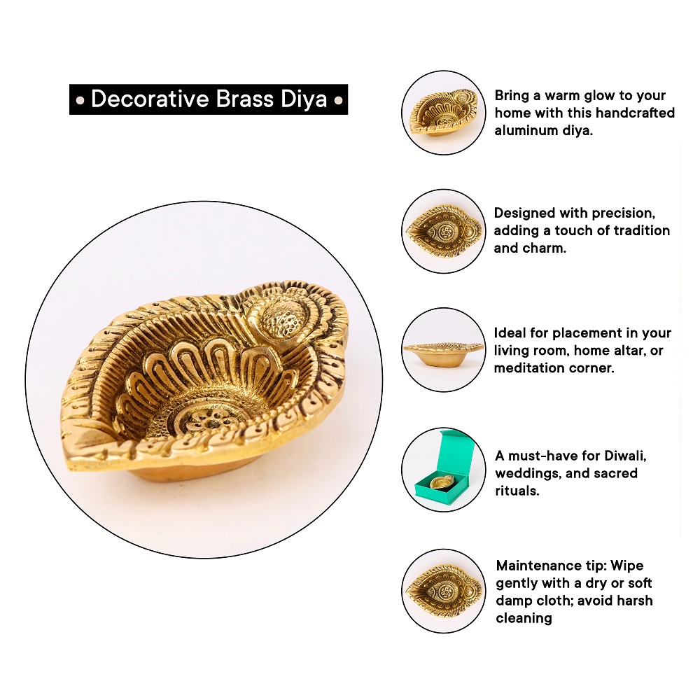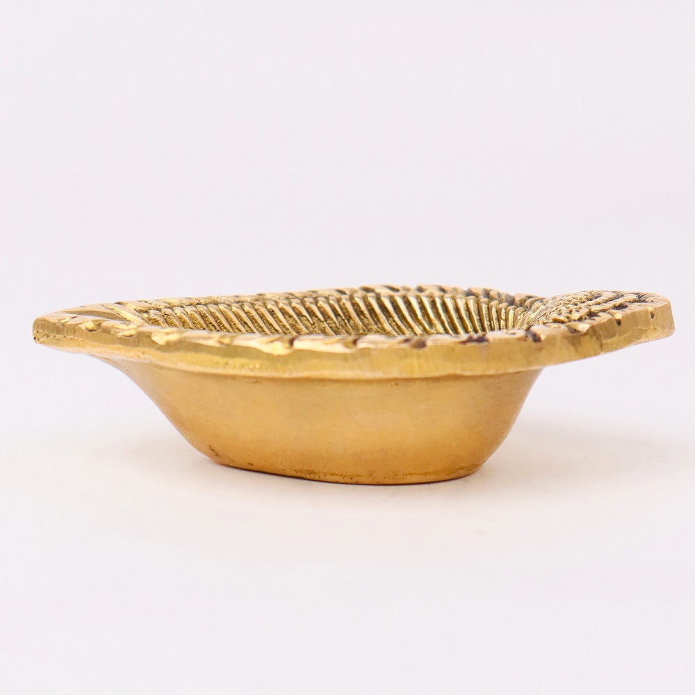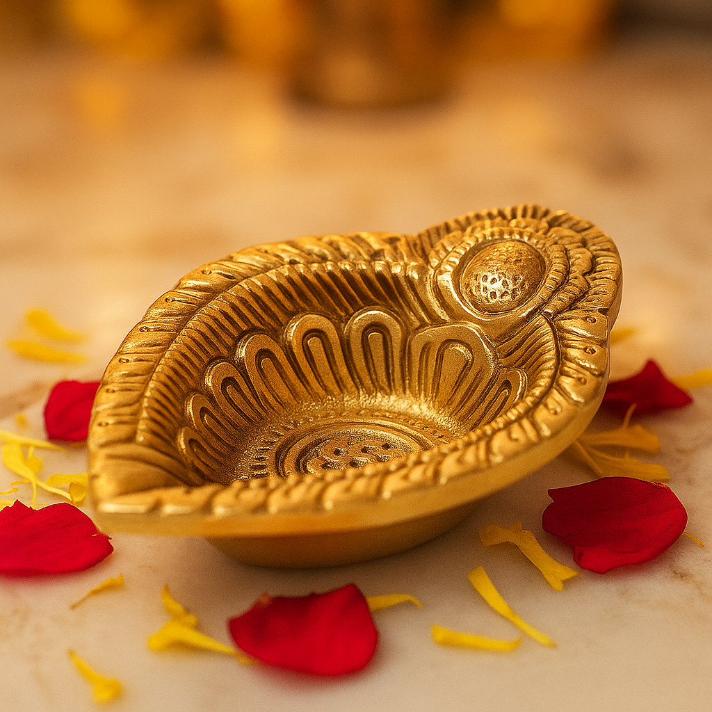 Illuminate your space with the timeless beauty of this Intricate Leaf Shaped Brass Diya, a diya that embodies purity, growth, and harmony. Handcrafted by skilled artisans, its leaf-inspired form symbolizes renewal and prosperity, while the golden brass polish radiates divine energy. Compact yet detailed, this diya is an exquisite choice for daily puja, Diwali décor, or as a meaningful spiritual gift.