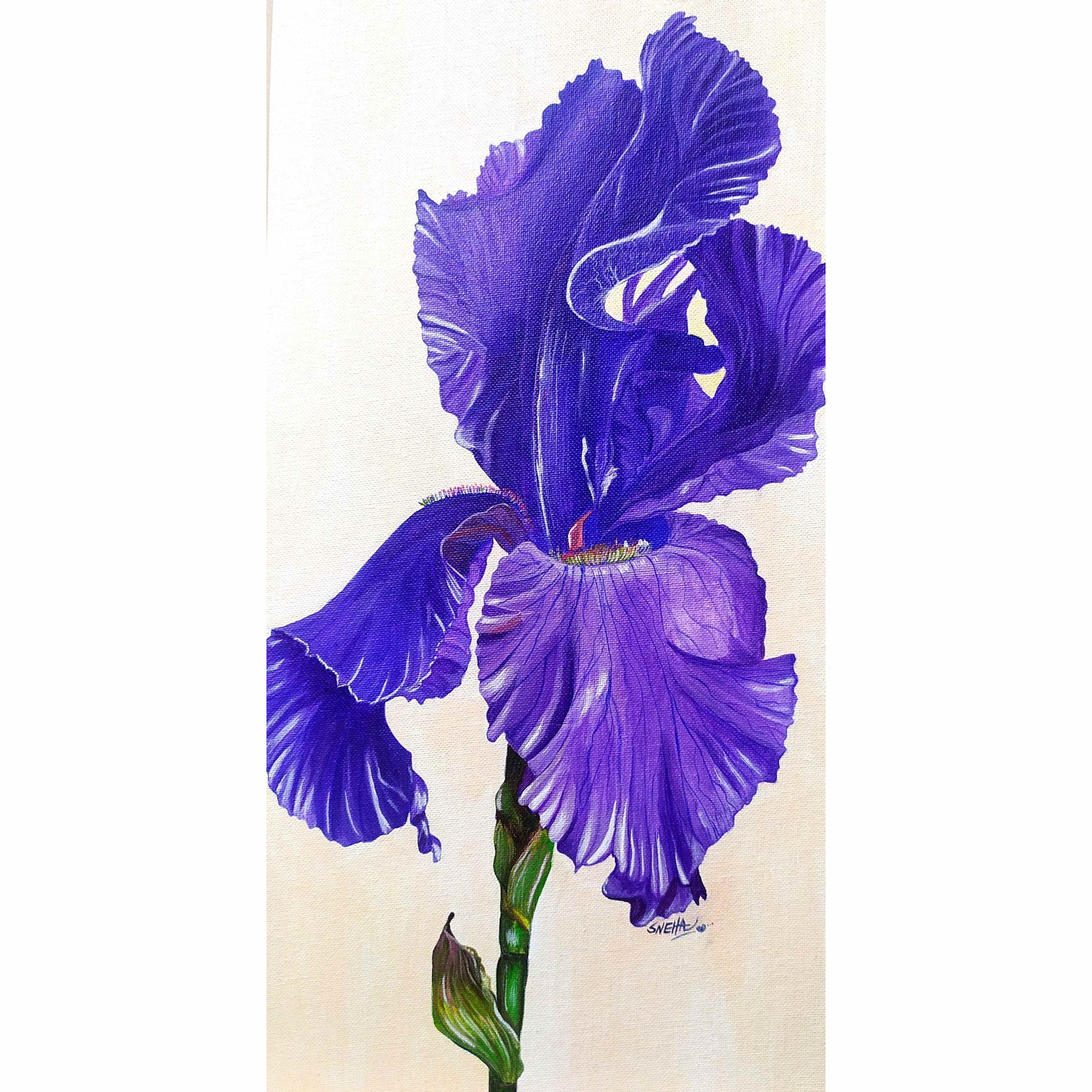 A vivid blue iris unfurls with striking realism, each petal painted with delicate veins and velvety depth. Its poised elegance captures the quiet nobility of nature in bloom. This artwork becomes an ode to beauty, precision, and the still strength of the natural world.