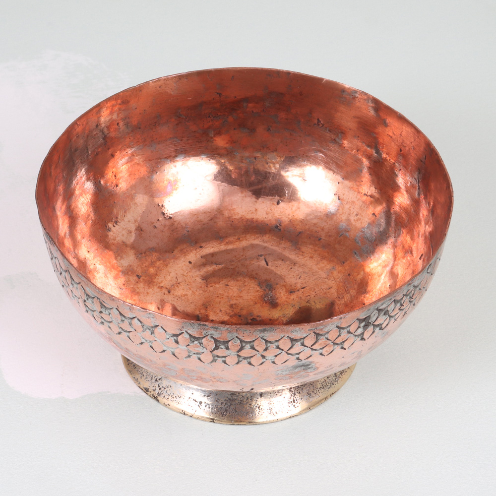 Discover the captivating allure of Peshawari craftsmanship with this stunning Vintage Copper Islamic Bowl. Immerse yourself in the rich cultural heritage that radiates from every intricate detail. This copper masterpiece is more than just a decorative accent - it's a true work of art that celebrates the skilled craftsmanship of Peshawari artisans. The captivating design, with its harmonious blend of colors and intricate patterns, will instantly elevate the ambiance of any room, transporting you to the vibrant streets of Peshawar. Whether you're seeking to add a touch of cultural sophistication to your living space or searching for a unique centerpiece to adorn your dining table, this vintage copper bowl is the perfect choice. Its timeless appeal and functional versatility make it an essential addition for any discerning home décor enthusiast.