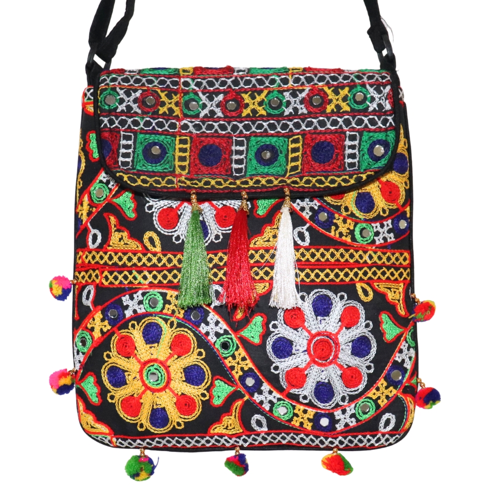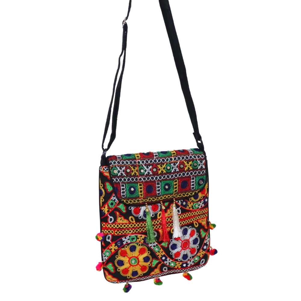 Bring a touch of Rajasthan’s vibrant culture to your everyday fashion with this beautifully handcrafted Jaipuri Embroidered Cotton Sling Bag. Made by skilled artisans, this crossbody bag features traditional mirror work, colorful embroidery, and charming tassels, making it a standout accessory for ethnic and bohemian outfits. The multicolor floral and geometric patterns add a bold, festive flair, while the durable cotton fabric ensures long-lasting use. Lightweight and practical, it includes an adjustable strap for comfortable shoulder or crossbody wear, and a flap closure for secure storage of your essentials. Whether you're heading to a market, cultural event, college, or casual outing, this bag adds personality and handcrafted elegance to your style. It’s a perfect gift for lovers of unique, artisanal accessories and eco-friendly fashion. Let your bag tell a story of craftsmanship and tradition – shop your Jaipuri sling bag today and carry a piece of India’s heritage with you!