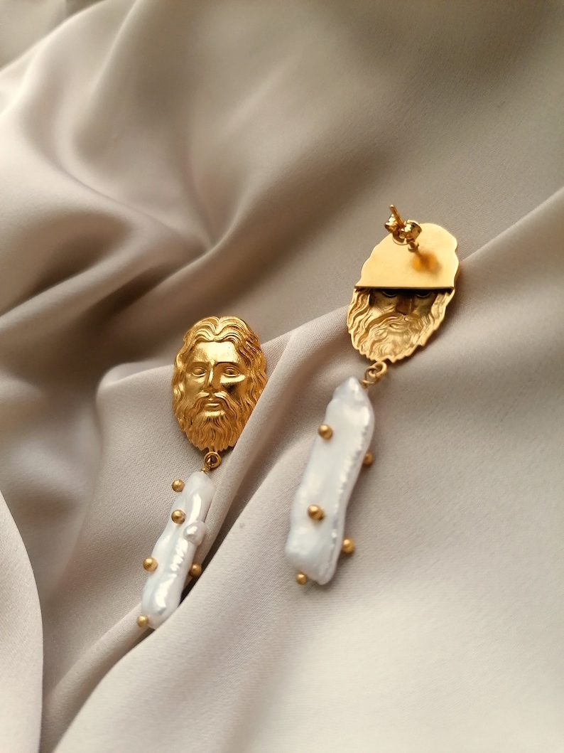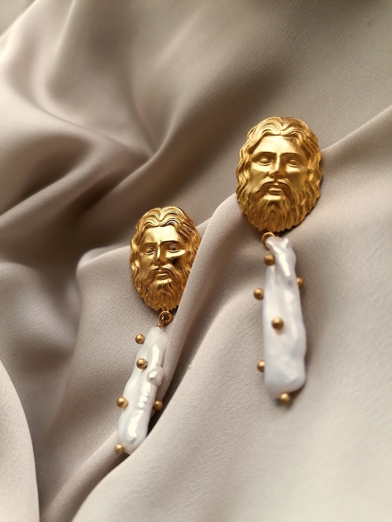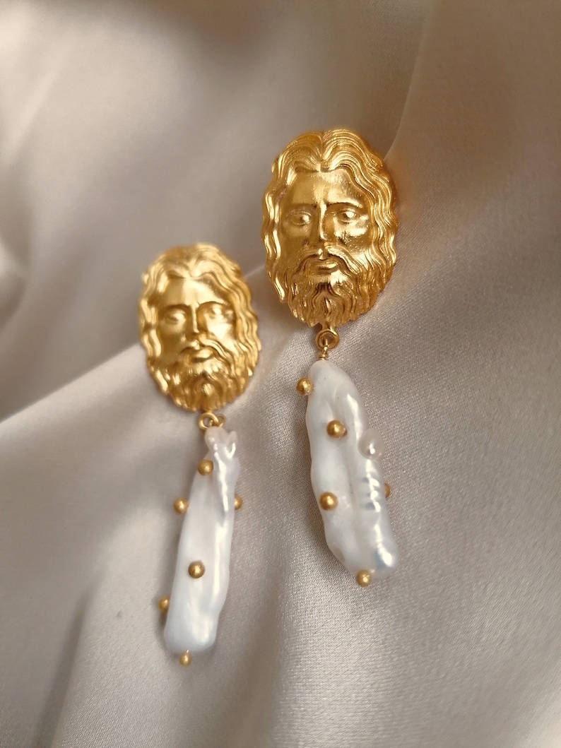 The Jesus with Pearl Dangle Earrings embody devotion and beauty in perfect harmony. Handcrafted from premium brass and plated with radiant 18K gold, these earrings feature a delicately engraved image of Jesus paired with a lustrous pearl drop — symbolizing purity, faith, and eternal light. Designed to resonate with both spiritual and aesthetic appeal, they blend sacred artistry with modern elegance, making them a meaningful accessory for believers and admirers of handcrafted design.