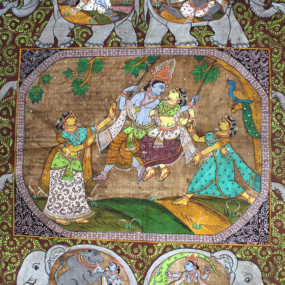 Radha-Krishna Swing Jhula in the Jungle, Radha-Krishna amour is an all-time love legend. This is a very typical Radha-Krishna pose, peacefully seated on the jhula together admiring the gorgeous mother nature surrounding.