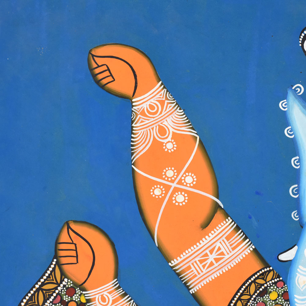 Beyond its decorative value, the painting represents a continuation of Indias rich artistic legacy and the storytelling tradition of Kalighat artists who portrayed divine figures with remarkable character and symbolism.