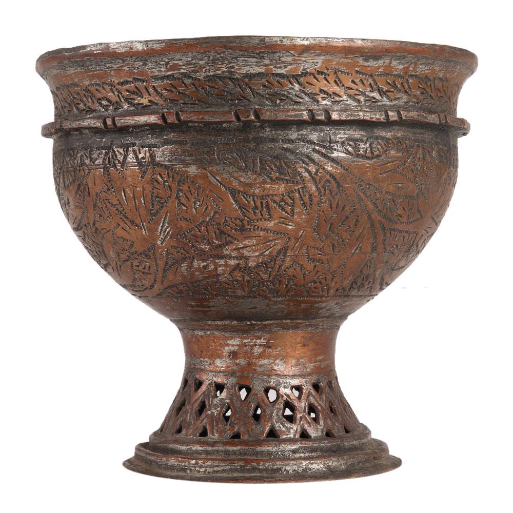 This chinar carved Kashmiri copper bowl will spruce up and add grace to your kitchen. It has a simple circular handle less contour and can be used to serve nuts and dry fruits, as well as any other delicacy of your choice.