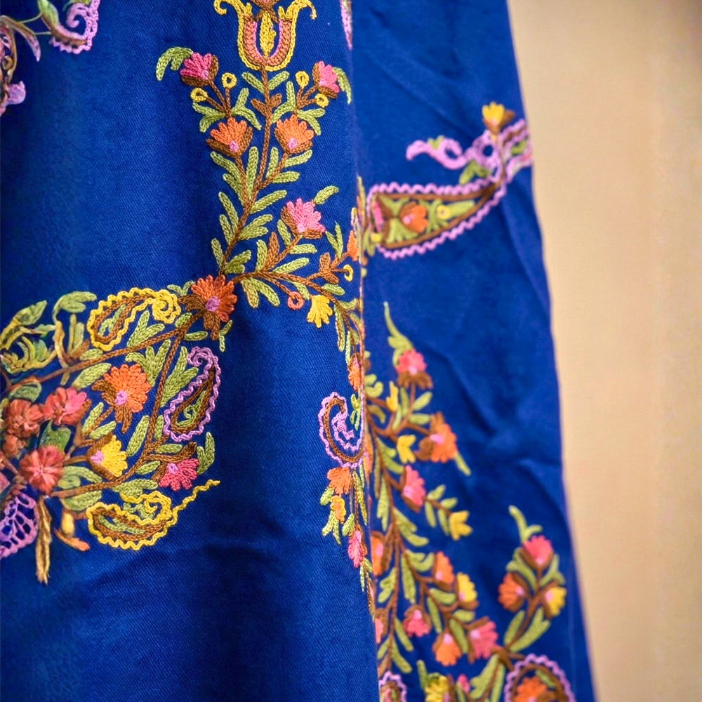• Colour: Deep blue with multicolour floral embroidery
