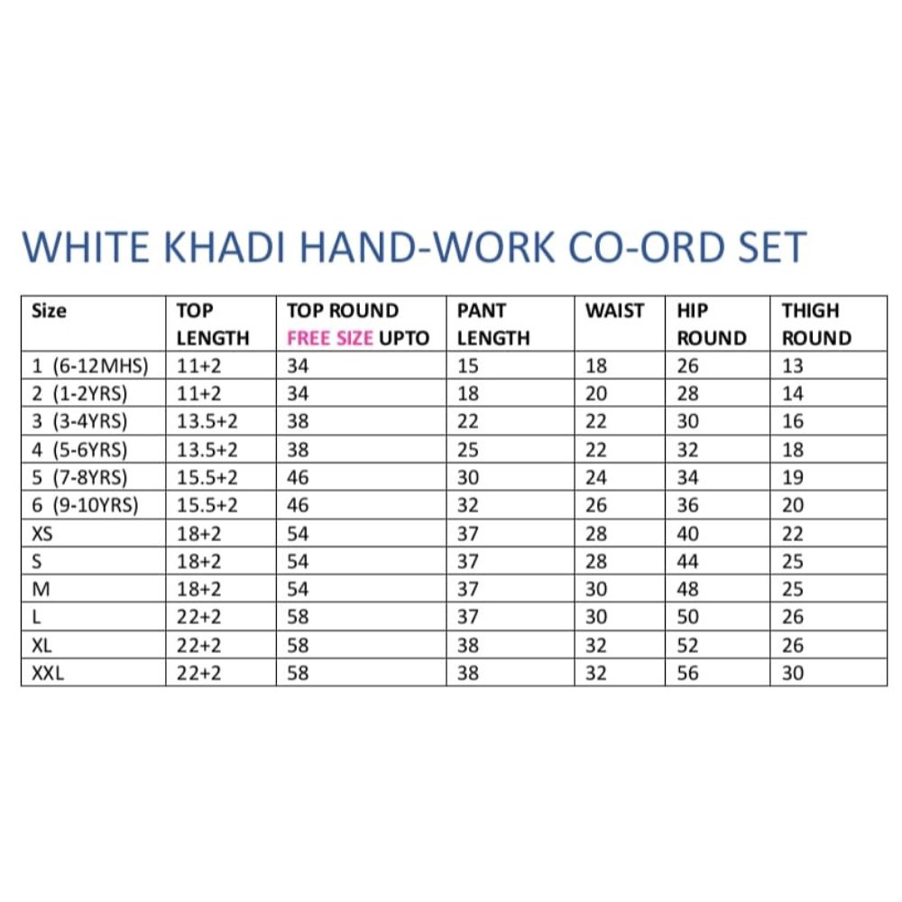 Experience timeless elegance with our Khadi Hand Embroidery Work Coordset, a beautiful fusion of traditional craftsmanship and modern style. Crafted from premium khadi cotton, this set offers unmatched comfort and breathability, making it perfect for all-day wear. The outfit features exquisite hand embroidery paired with delicate crochet detailing along the borders, showcasing the artistry and skill of our artisans. Available in four charming crochet border colors - blue, peach, yellow, and purple - this coordset allows you to choose a style that resonates with your personality. Each piece is fully customizable in size, ensuring a perfect fit for everyone, including adorable mini versions for baby girls, making it a wonderful choice for coordinated family outfits. Whether worn for festive occasions, casual outings, or cultural gatherings, this versatile ensemble captures attention with its subtle sophistication and heritage-inspired appeal.