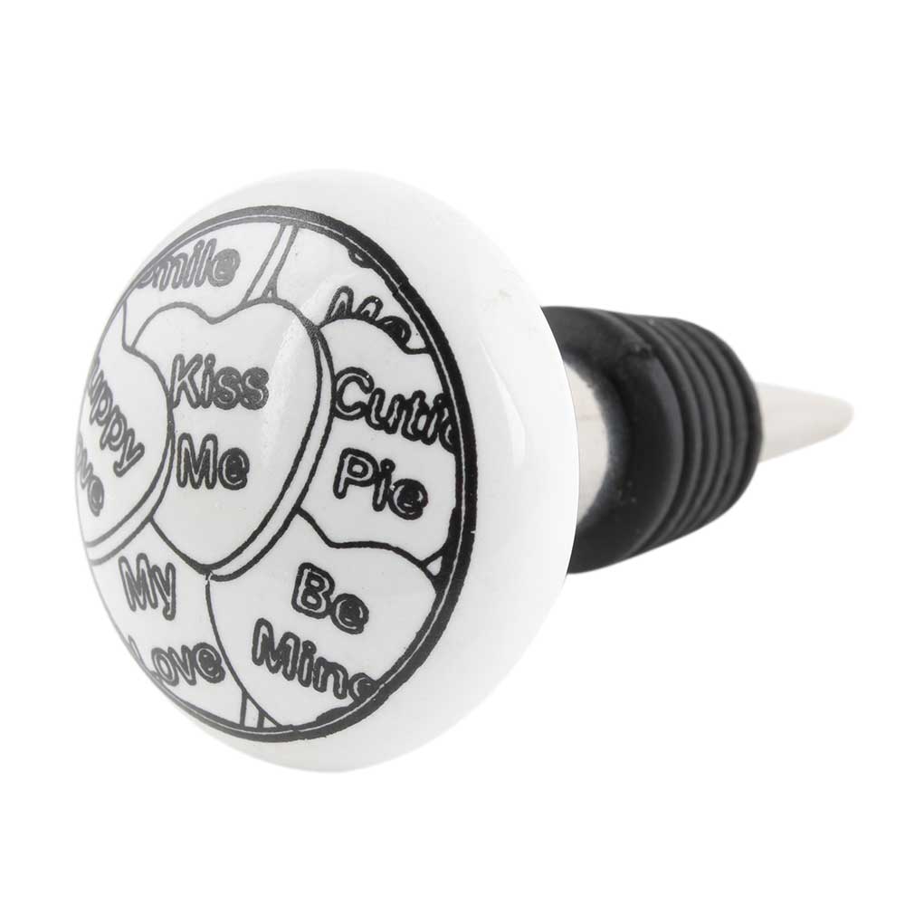 Kiss Me Flat Ceramic Wine Bottle Stopper. Zinc Alloy Wine Bottle Stopper with Attractive Jute Bag Packaging.