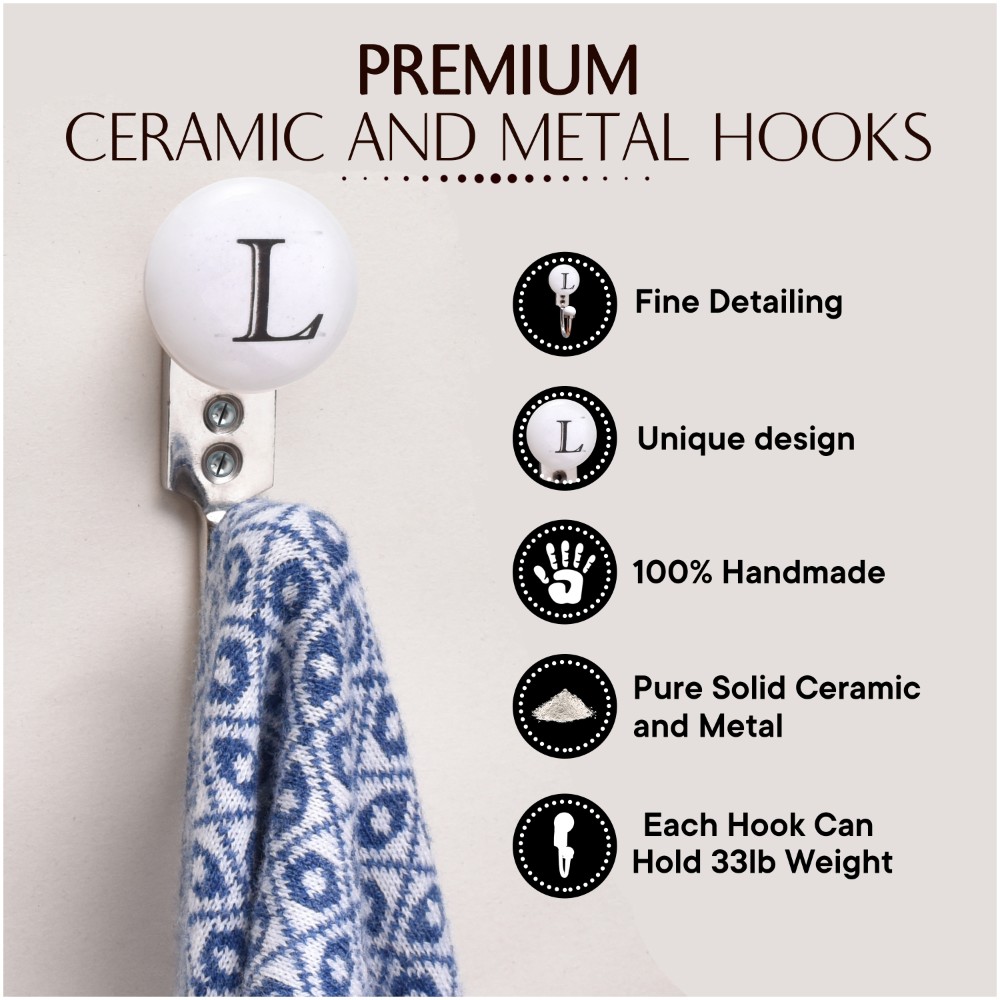 L Flat Ceramic Hook. When Put on Wall or Cabinet It is An Art in Itself. This Hook is Strong Enough to Hold Your Keys, Tea Cups, Hand Towels, Cloths Etc.