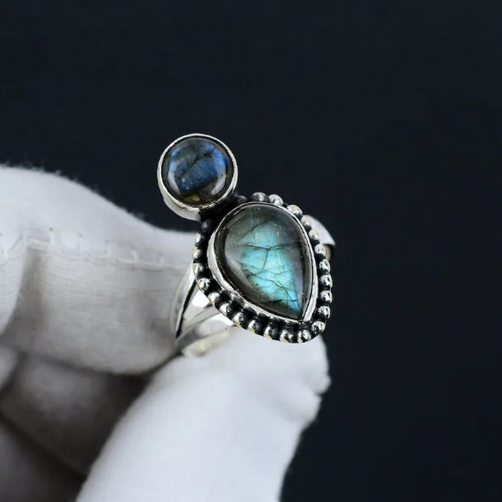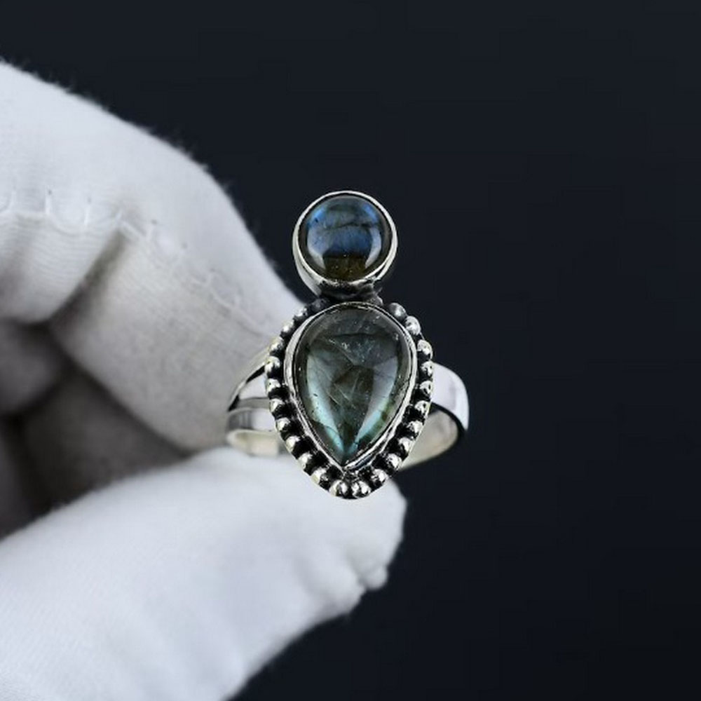 • Labradorite 925 Sterling Silver Ring Handmade Boho Jewelry