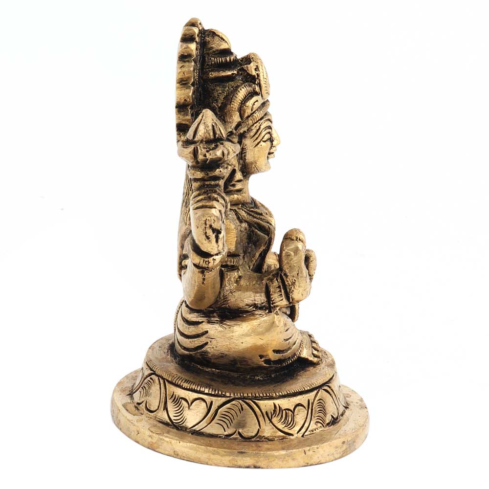 This figurine of Goddess Lakshmi has been handcrafted in brass. It is the best gifting item during Diwali and other festivities. You can also decorate your home, indoors or outdoors, in the garden or near the entrance with this amazing piece of artistry. It is also a perfect addition to your puja room.