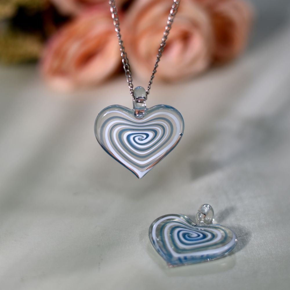 Infused with emotion and artistry, this Lampwork Turquoise Spiral Heart Glass Pendant is a celebration of craftsmanship and beauty. Handcrafted using the traditional lampwork technique, molten glass is shaped into a graceful heart form, encasing delicate turquoise spirals that evoke calmness and clarity. Its tranquil hue and polished finish make it an exquisite gift — a symbol of love, serenity, and the timeless art of handmade design.