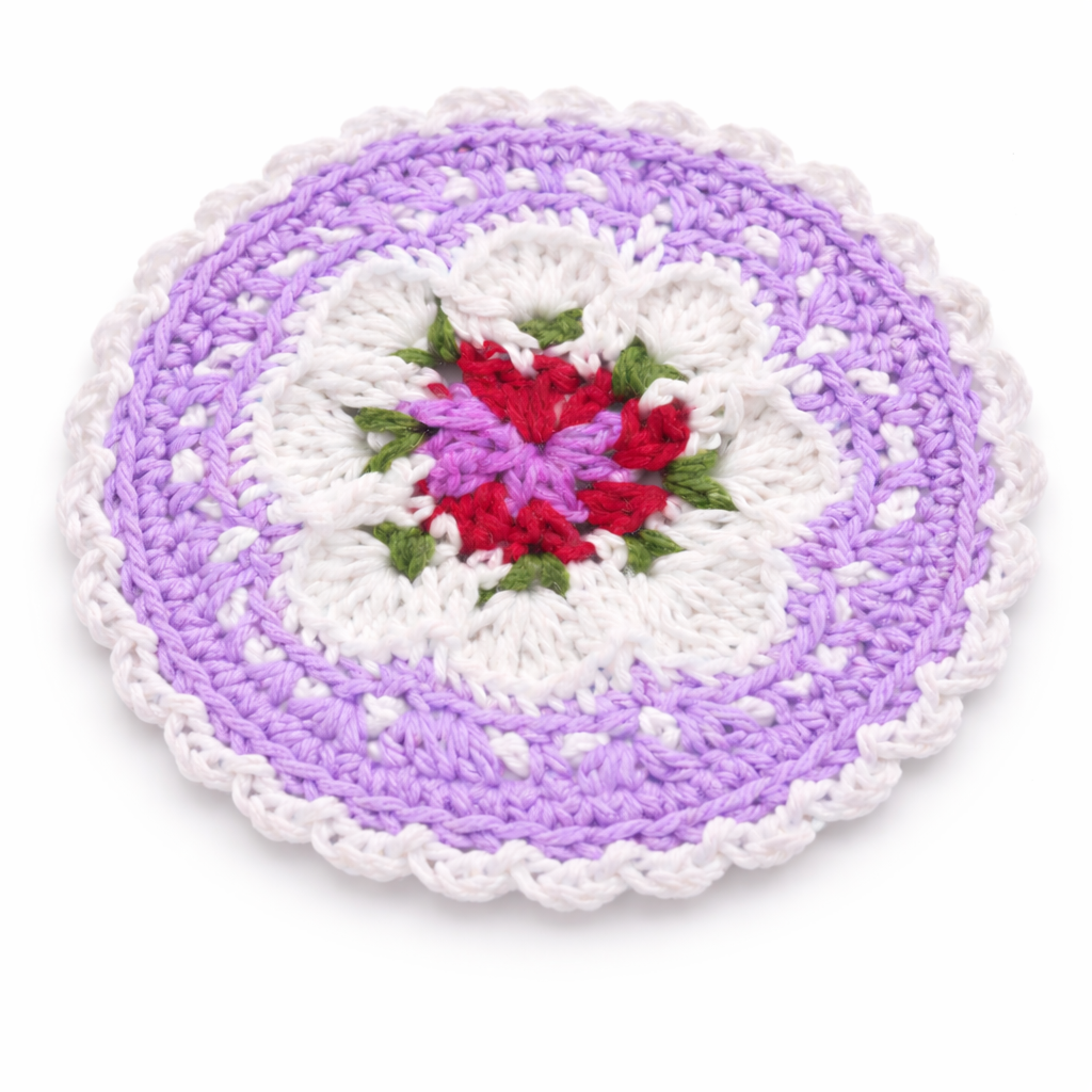 This lavender crochet doily coaster is handcrafted using soft cotton yarn and features a delicate floral center surrounded by a beautiful lavender crochet pattern. The soft lavender tone combined with the intricate crochet lace design adds a gentle decorative touch to dining tables, coffee tables, and tea settings. Designed for both style and function, this handmade cotton yarn doily coaster protects surfaces from heat, stains, and moisture. Product Features Handcrafted crochet doily made from cotton yarn Decorative floral center crochet pattern Elegant lavender crochet design with white lace border Helps protect tables from heat, stains, and cup marks Lightweight handmade decorative table accessory Material and Craftsmanship Material: Cotton yarn Technique: Hand crocheted Shape: Round Design: Floral crochet doily pattern Finish: Soft handcrafted cotton texture Usage Ideas Tea cup and coffee mug coaster Decorative doily for trays and table displays Accent mat for dining tables and coffee tables Handmade dcor accessory for kitchen and living spaces Care Instructions Hand wash gently with mild detergent and air dry flat to maintain the crochet structure and cotton yarn quality. FAQs What material is used to make this crochet coaster? This coaster is handcrafted using durable cotton yarn. Can this crochet doily be used for hot drinks? Yes, it works well as a coaster for tea cups, coffee mugs, and glasses. Will every handmade piece look identical? No. Because each piece is handcrafted, slight variations may occur, making every doily unique.