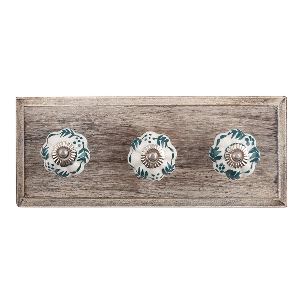 Lemon Grass Ceramic Wooden Hook. A Perfect Complement to the Soft Tone of the Wood are these White Traditional Hat & Coat Hook Made of Genuine Porcelain and Brass. It can be use to Hang Jewellery, Leashes, Towels, Scarves, Light Weight Sweaters, Caps Etc.
