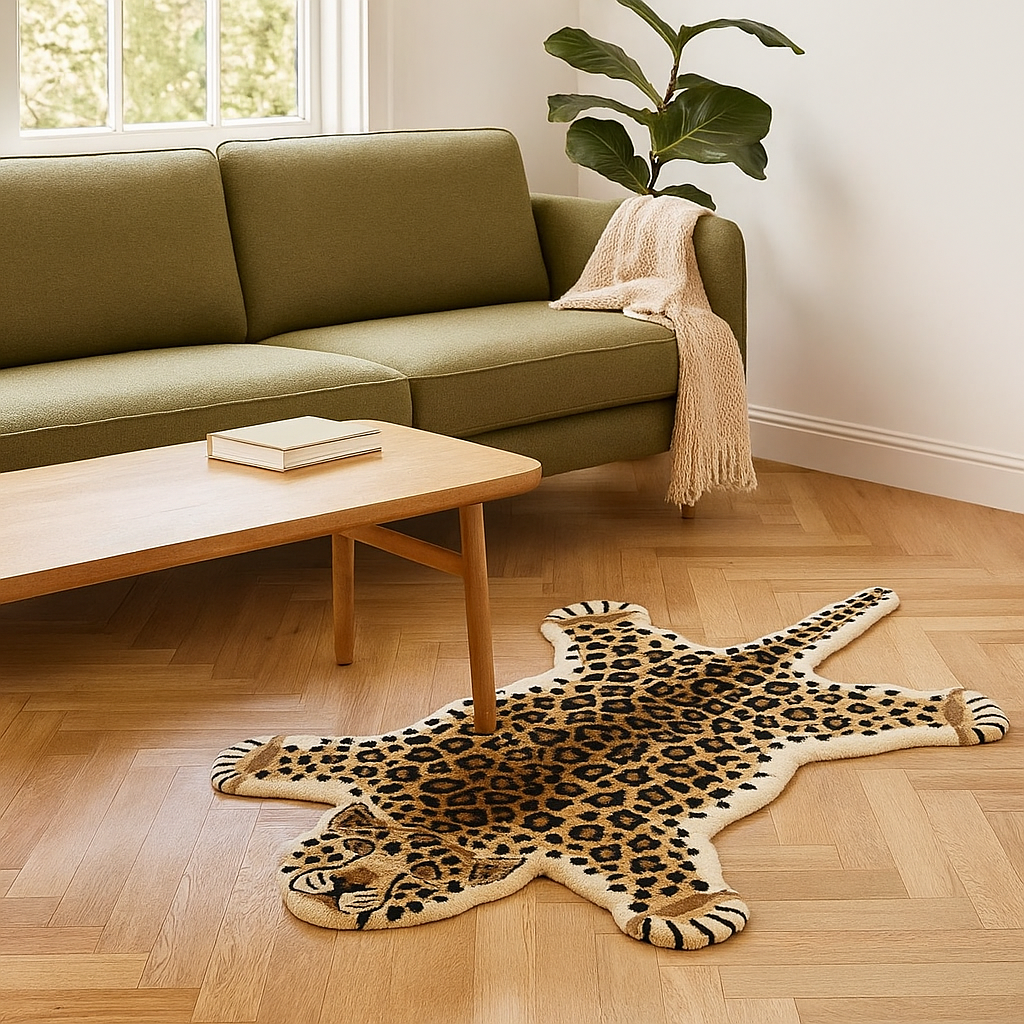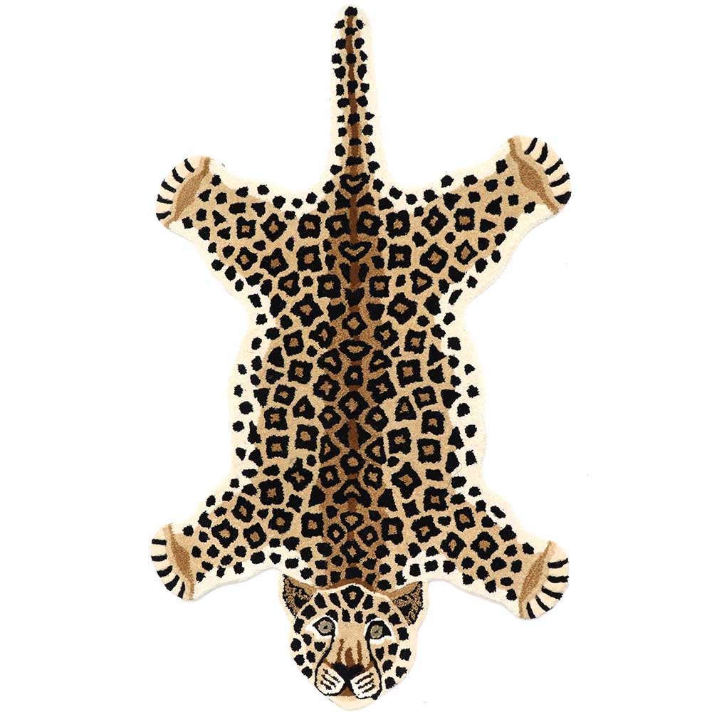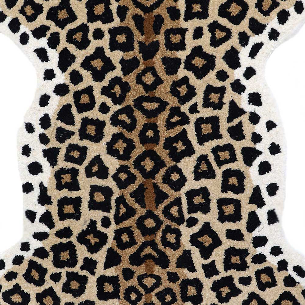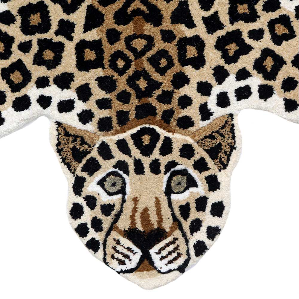 A realistic looking little cheetah lying flat on its back in your space sounds like something your visitors will remember. You can't go wrong with this purchase. The snout is flawless, the paws are of realistic proportions, and the hide is unmistakably cheetah. Take note of how the spine runs the length of its back, all the way down to the straightened tail. This Leopard rug is hand-tufted from dyed woolen yarn. Created and developed in a small workshop; skilled artisans ensure the highest quality. Each detail, stripe, and dot is added with extreme care. Add a charming animal rug to your living space.