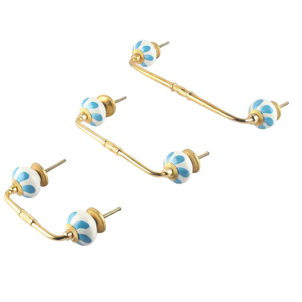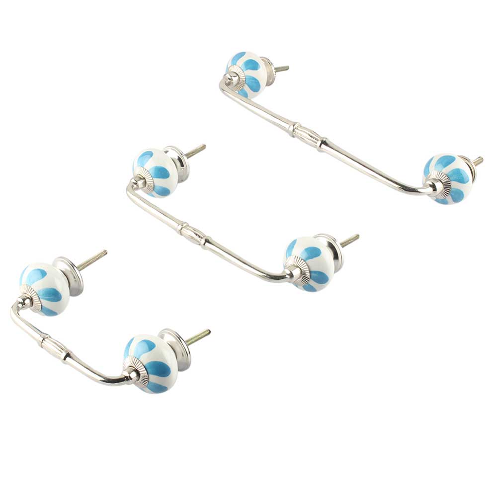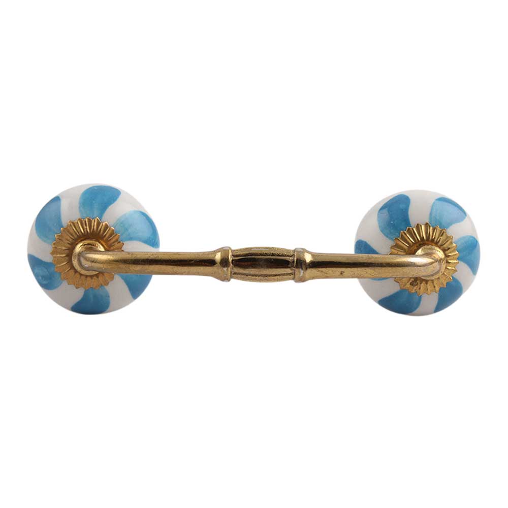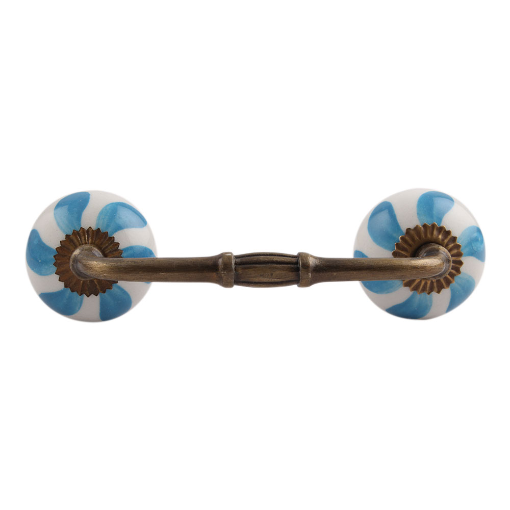 Light Blue Fan Ceramic Bridge Handle. Ideal for Drawer, Dresser, Cabinet, Wardrobe, Cupboard and Almirah.