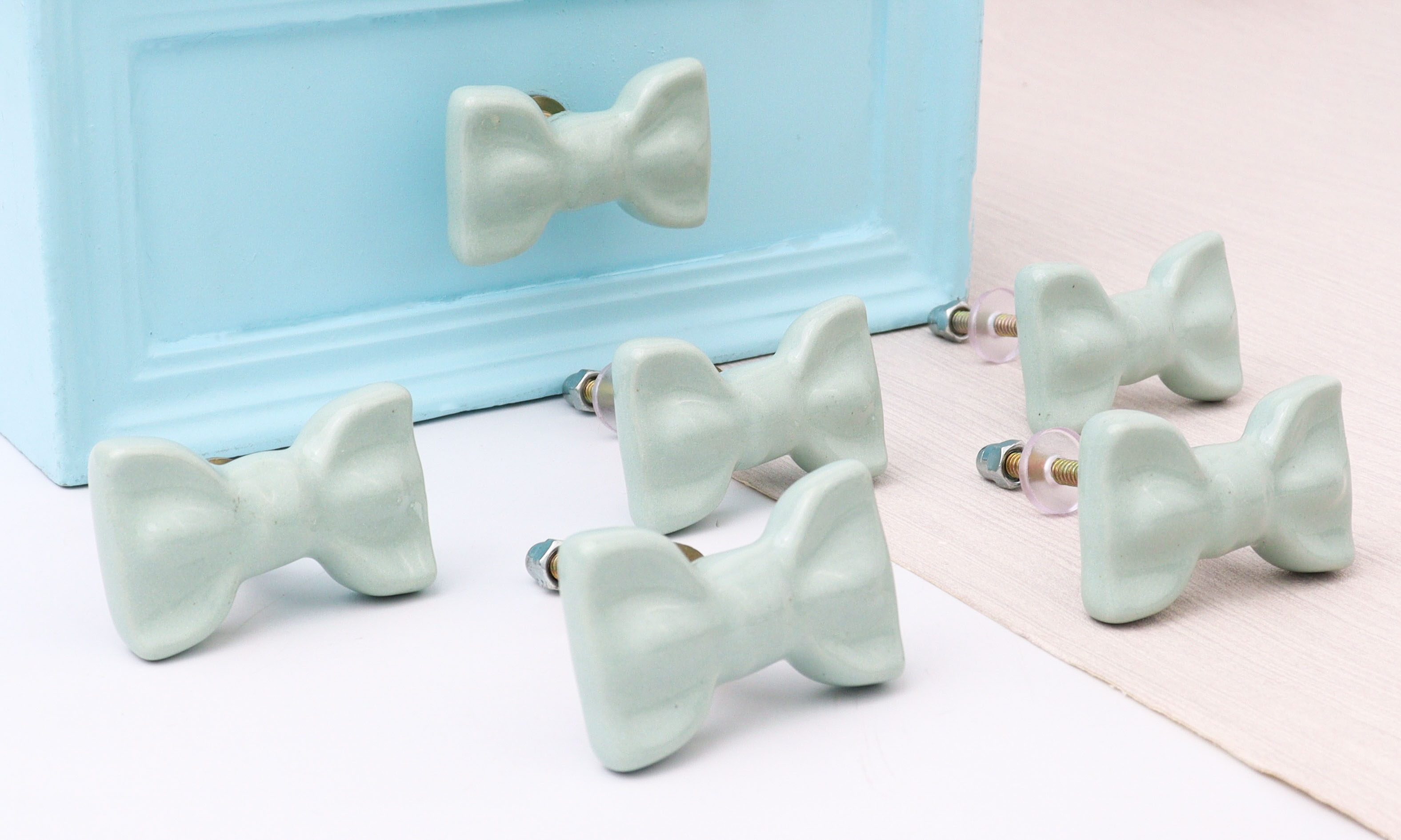 Whether it's a small touch in a powder room, a centerpiece for your kitchen cabinets, or an elegant addition to your bedroom furniture, the Light Green Ceramic Bow Cabinet Knob works beautifully in any space. Its understated elegance is sure to add character and charm, transforming any ordinary cabinet or drawer into a stylish focal point.