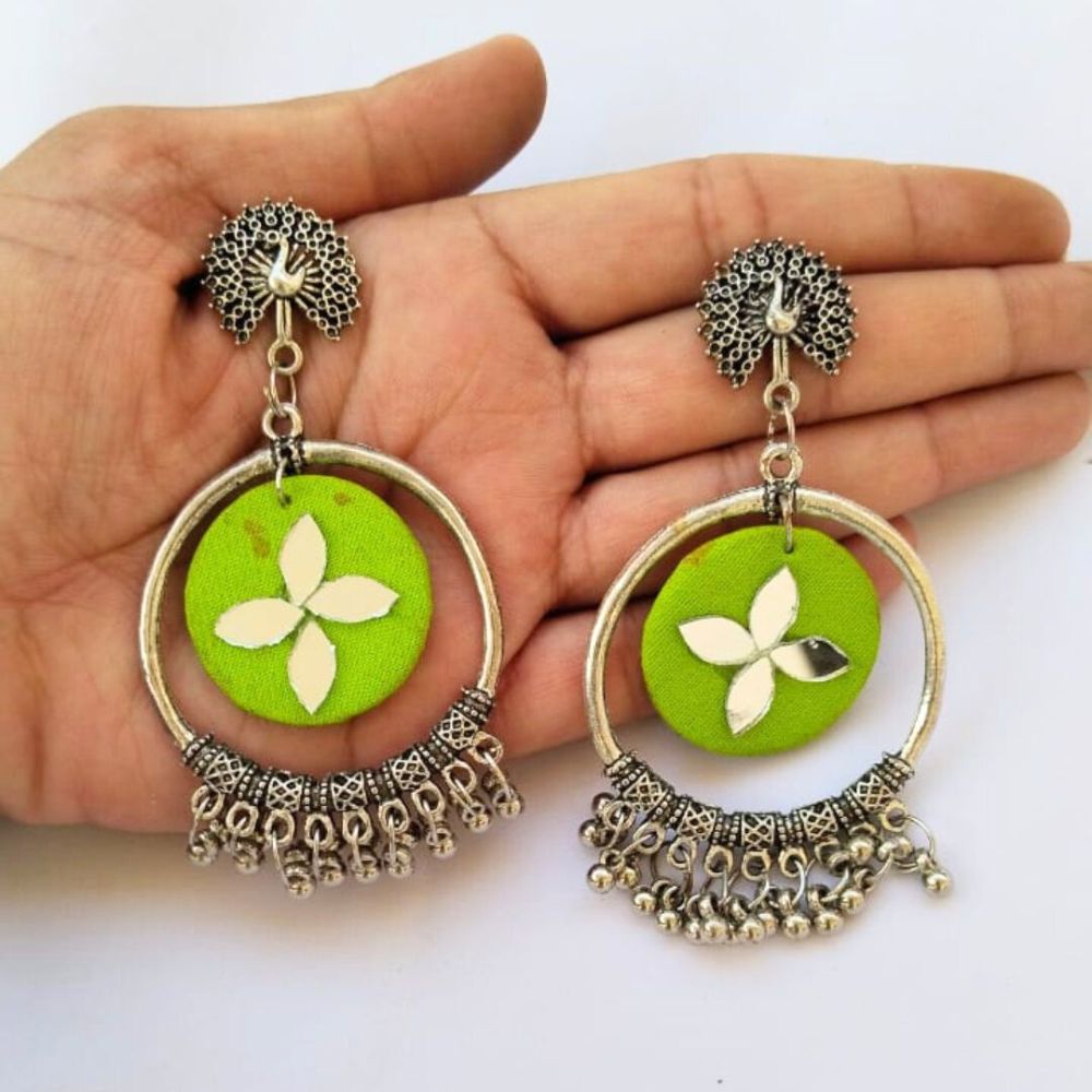 Pair these earrings with pastel kurtas, cotton sarees, or monochrome outfits, and store them in a dry pouch to preserve the fabric and oxidized finish.