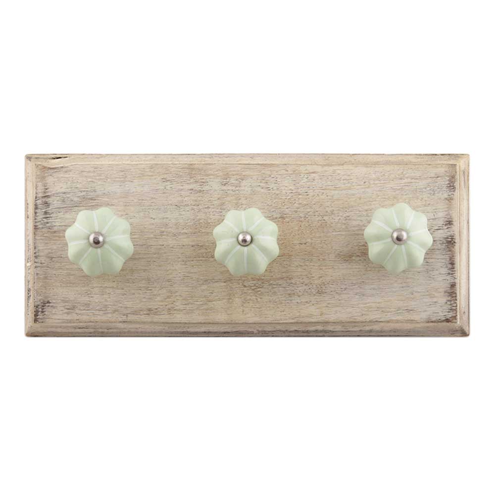 Light Green With Silver Line Medium Ceramic Melon Wooden Hook. A Perfect Complement to the Soft Tone of the Wood are these White Traditional Hat and Coat Hook Made of Genuine Porcelain and Brass. It can be used to Hang Jewelry, Leashes, Towels, Scarves, Light Weight Sweaters, Caps etc.