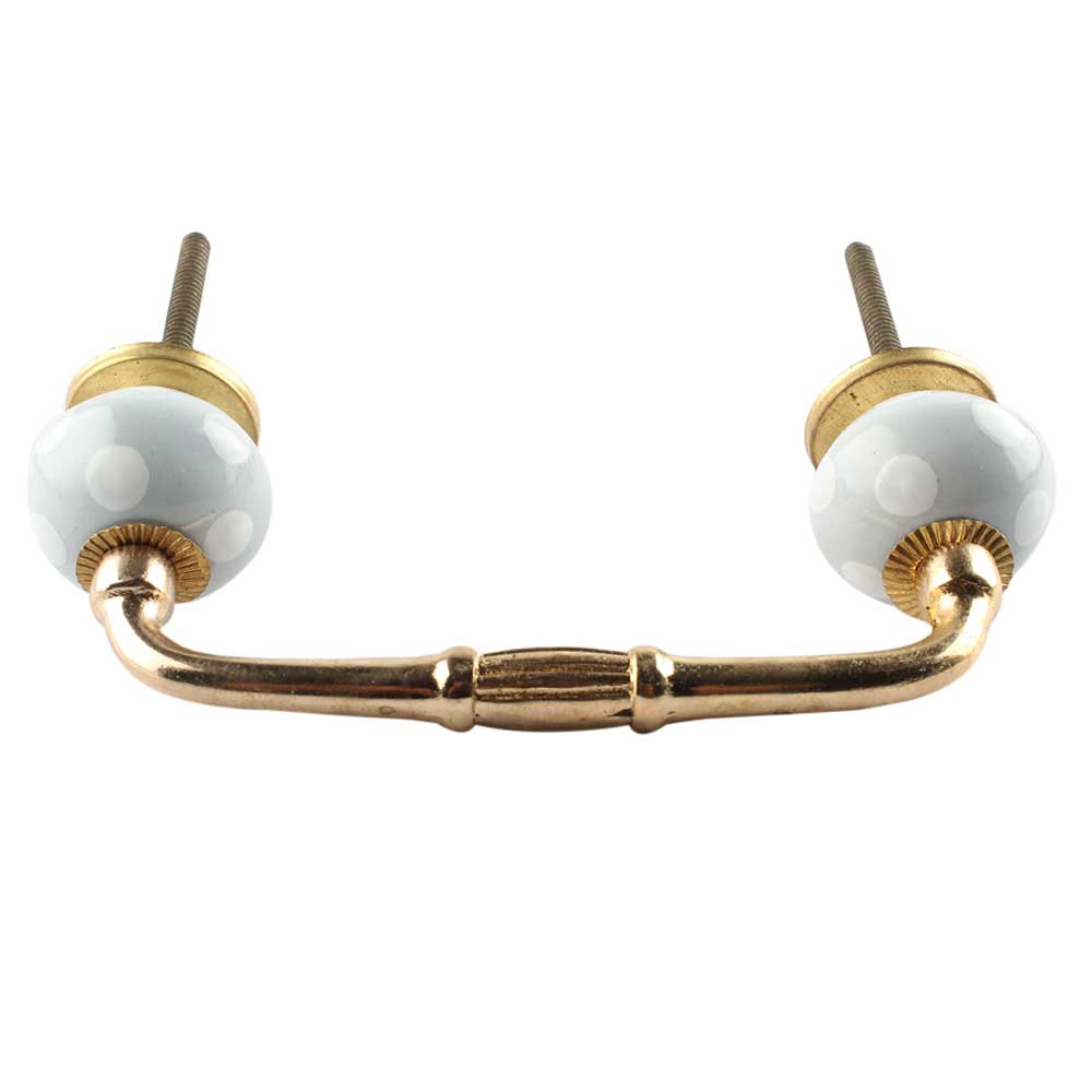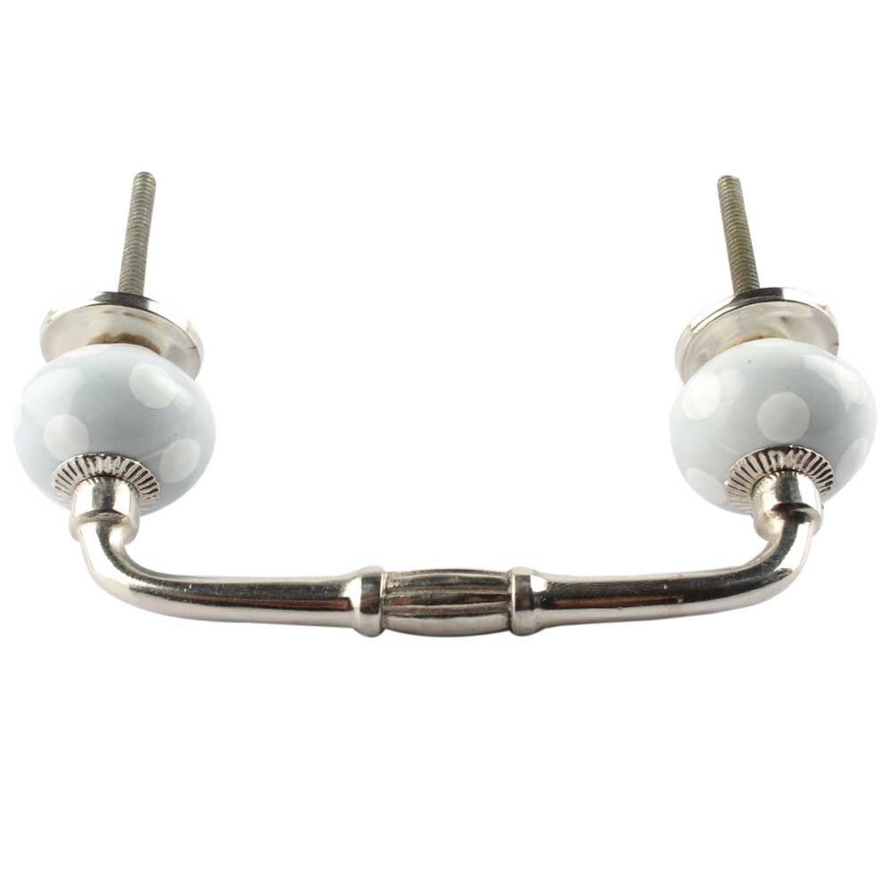 Light Grey Dotted Small Ceramic Bridge Handle. Ideal for Drawer, Dresser, Cabinet, Wardrobe, Cupboard and Almirah etc.