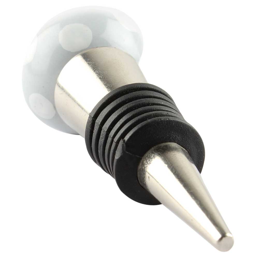 Light Grey Dotted Small Ceramic Wine Stopper. Zinc Alloy Wine Bottle Stopper with Attractive Jute Bag Packaging.