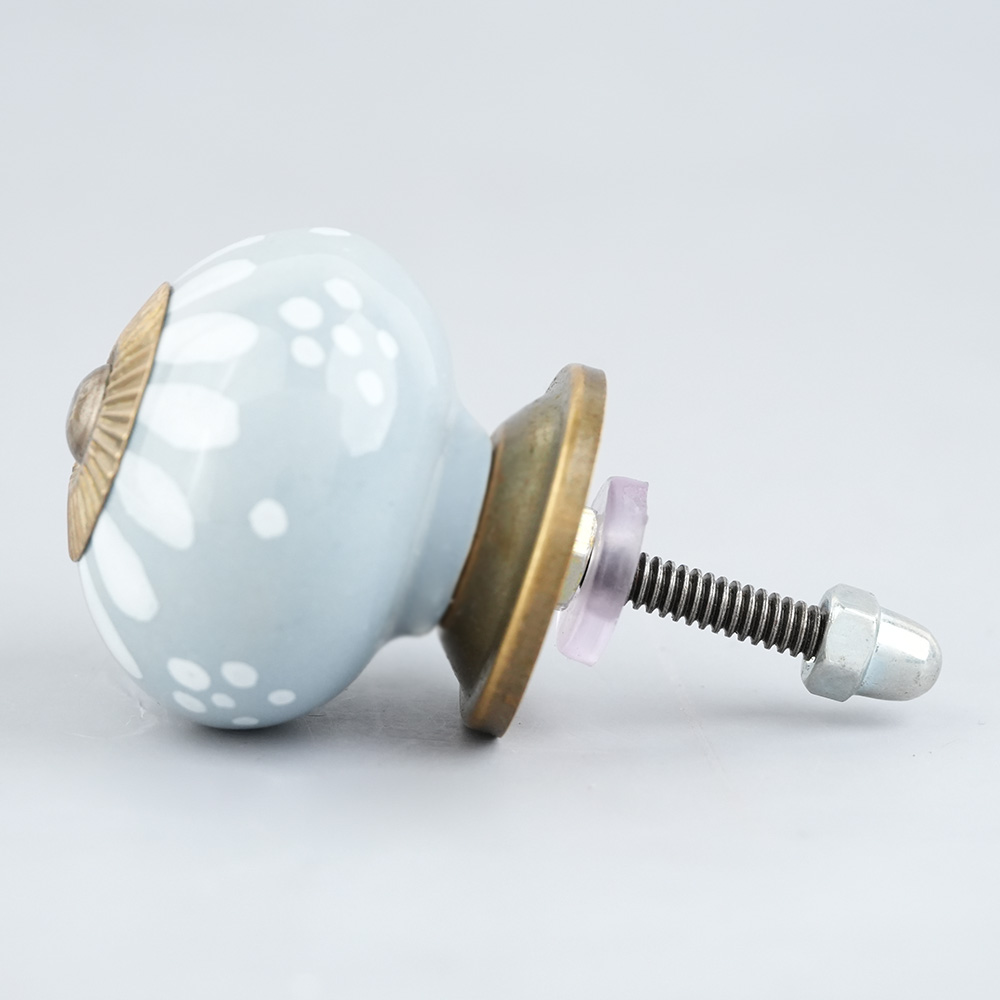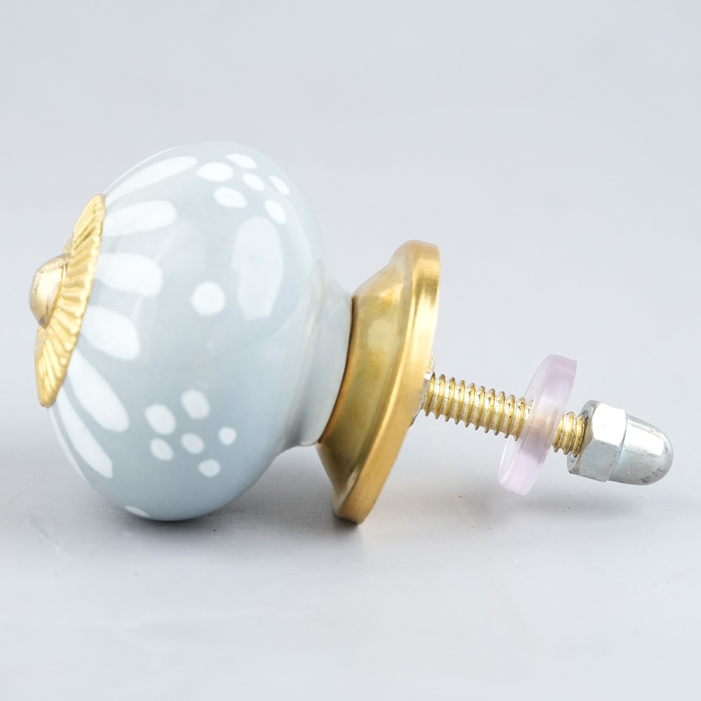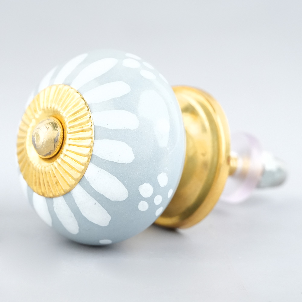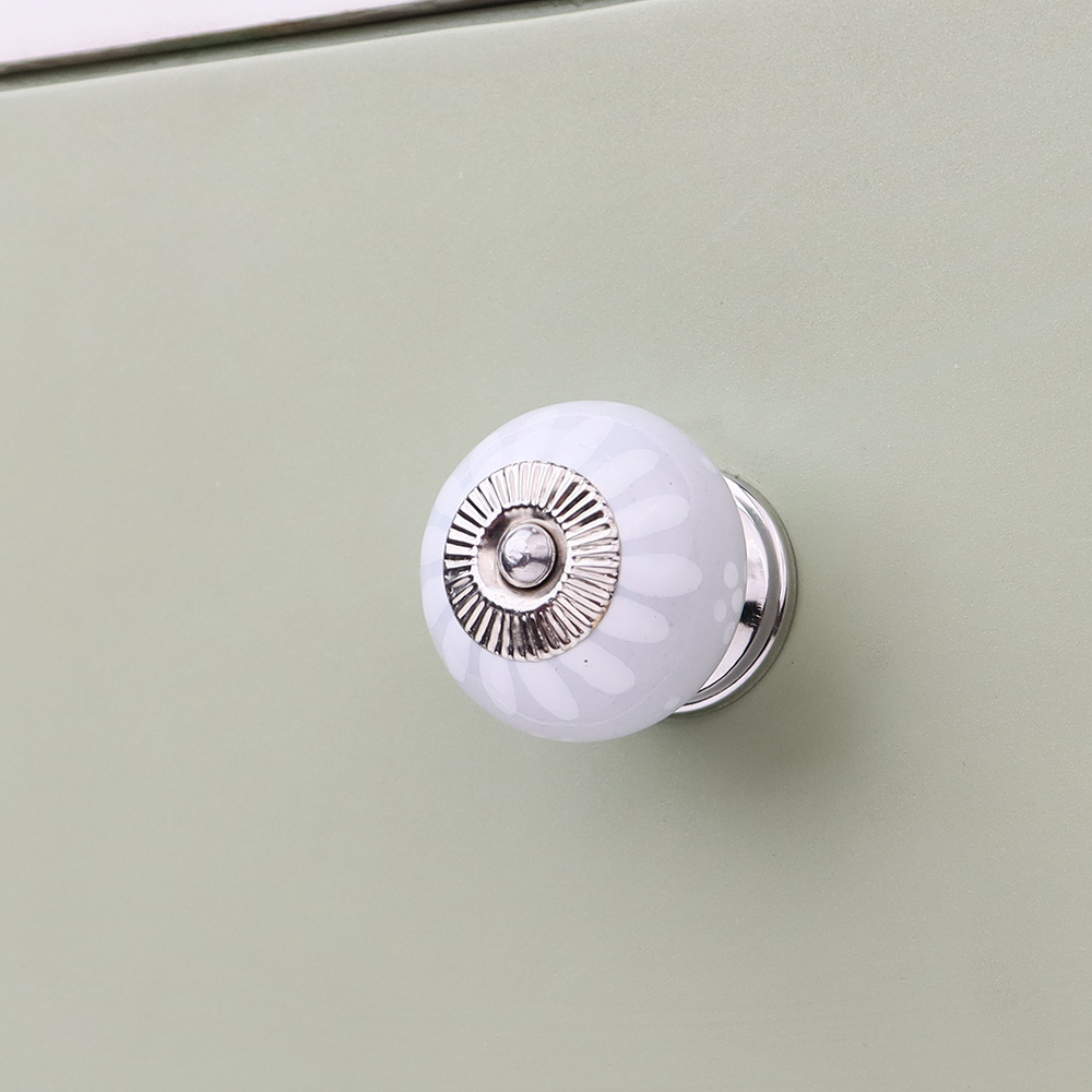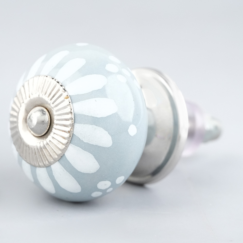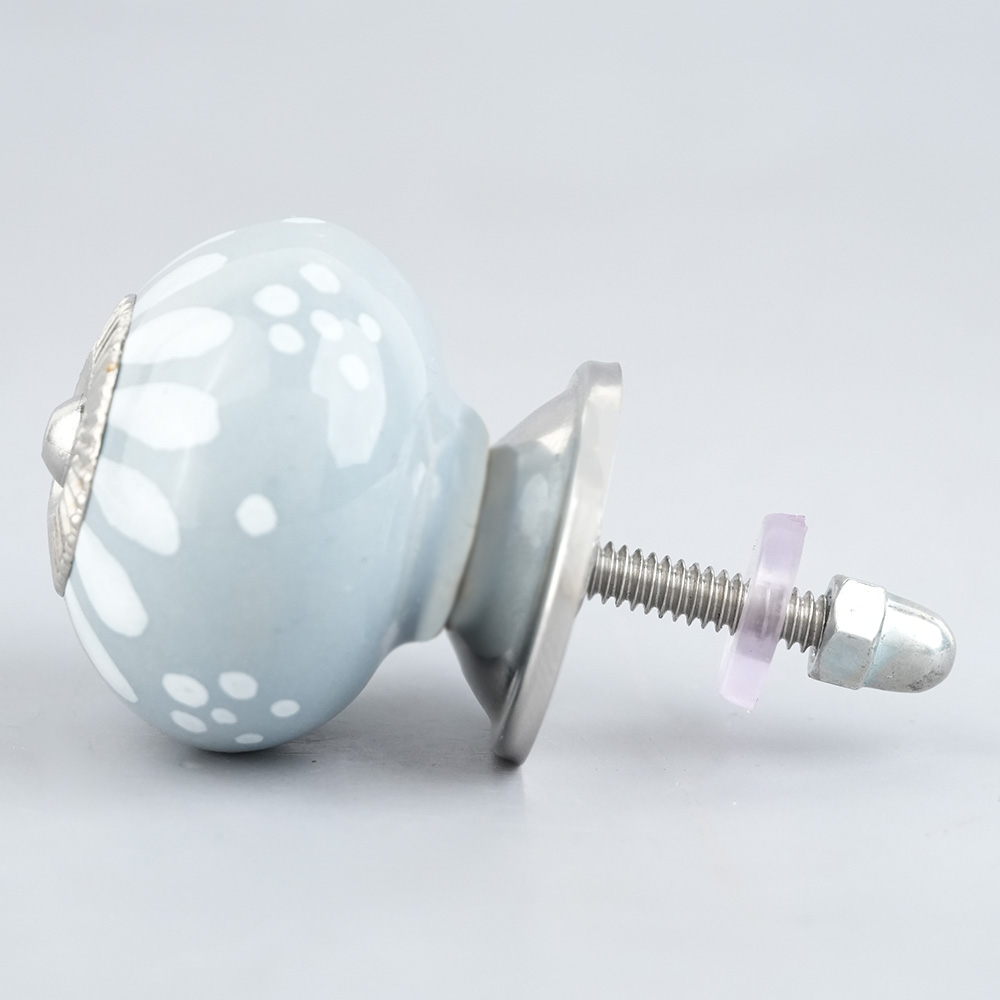 Light Grey Handpainted Floral Knob, kitchen drawers, dining room, bed room, chest drawers, dressing tables, almirah