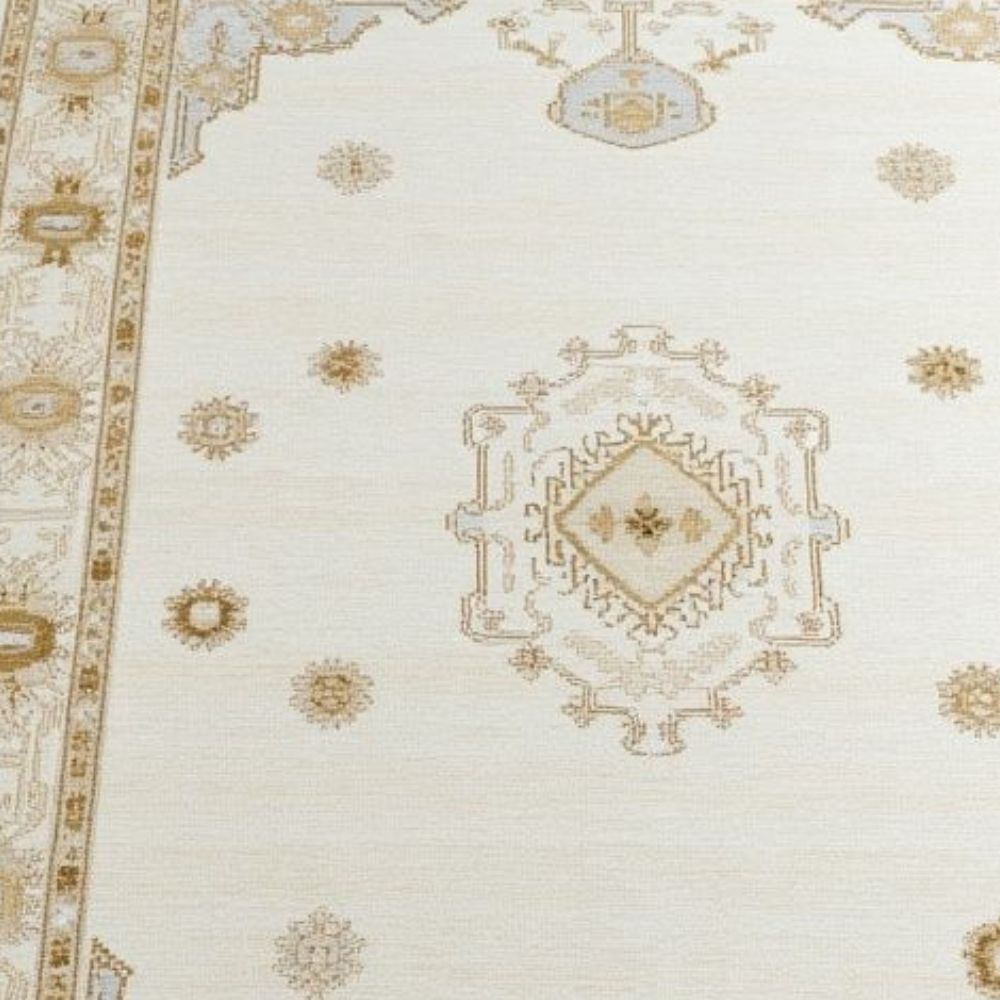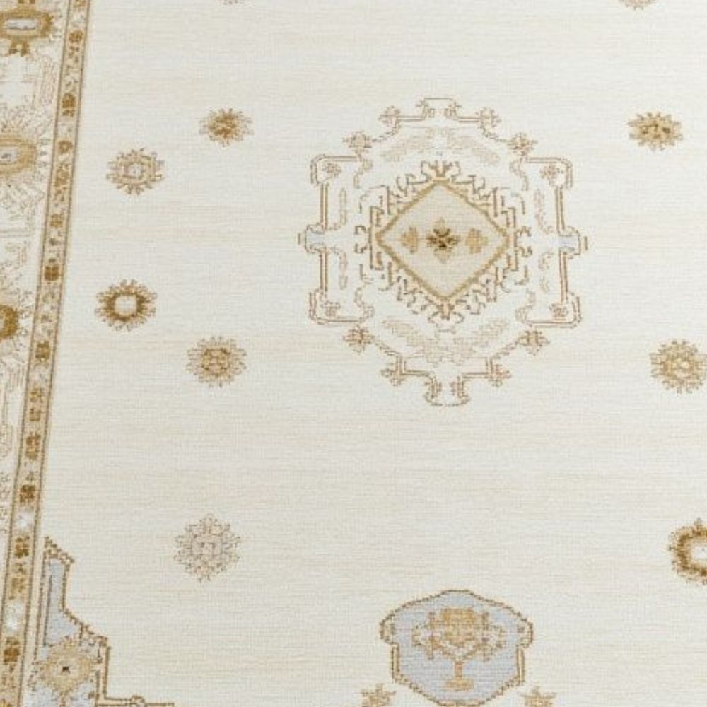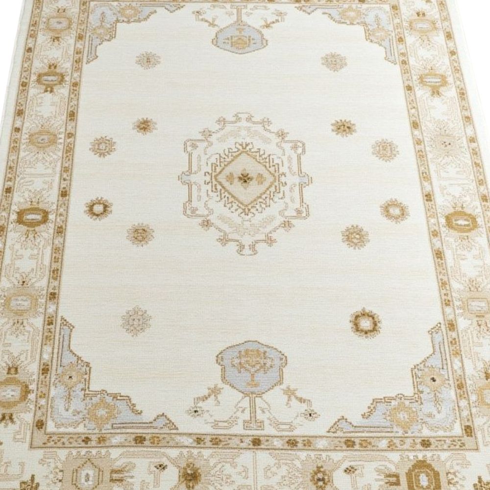 Bring calm, elegance, and timeless beauty to your interiors with this Handmade Ivory Oushak Wool Rug, crafted with precision by skilled artisans in Bhadohi, India the global hub of fine handmade rugs. This rug showcases a serene ivory and beige color palette, adorned with delicate Oushak-style floral and geometric motifs. The soft neutral tones make it a perfect choice for minimalist, Scandinavian, boho, or contemporary decor styles, adding subtle warmth without overpowering the space. Product Details: Design: Oushak-style with traditional medallion and faded floral elements Color Palette: Ivory, beige, soft camel, and hints of muted gold Material: 100% premium wool (natural fiber, eco-friendly, and durable) Feel: Soft underfoot with a medium pile suitable for living rooms, bedrooms, or home offices Processing Time: 45 weeks (Handmade on order with care and precision) Made In: Bhadohi, India known for centuries-old rug weaving heritage Custom Size & Design: Available on request we accept custom orders tailored to your room Standard Sizes Available: 2x3 ft | 4x6 ft | 5x8 ft | 6x9 ft | 8x10 ft | 9x12 ft | 10x14 ft Custom.