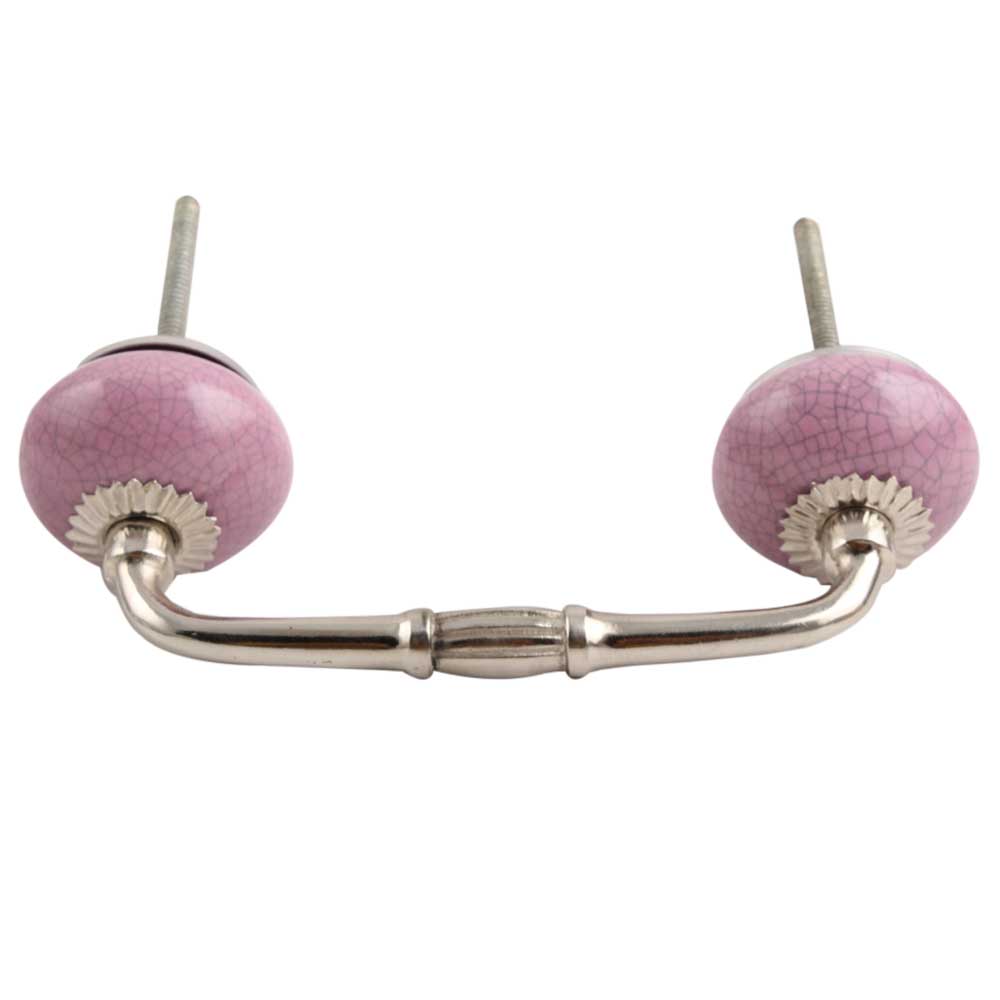Light Purple Crackle Ceramic Bridge Handle. Ideal for Drawer, Dresser, Cabinet, Wardrobe, Cupboard and Almirah.