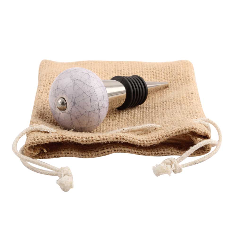 Light Purple Crackle Ceramic Wine Stopper.zinc alloy wine bottle stopper with attractive Jute Bag Packaging.