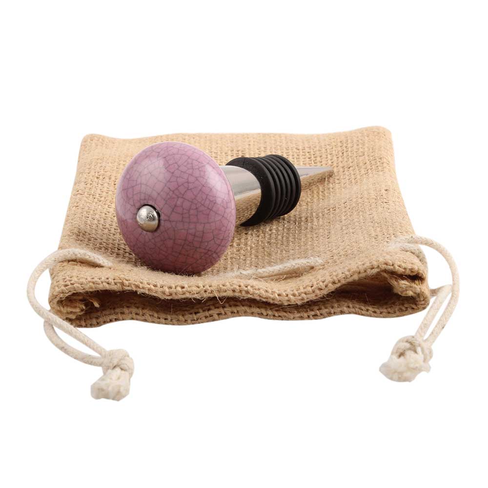 Light Purple Crackle Ceramic Wine Stopper .Zinc Alloy Wine Bottle Stopper with Attractive Jute Bag Packaging.