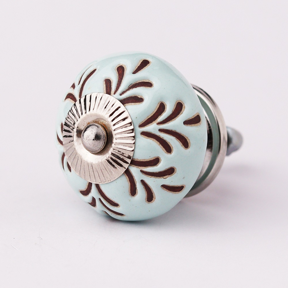Enhance your furniture with the Light Sage Green Etched Leaf Ceramic Cabinet Knobs, which bring a touch of natural beauty and tranquility. These knobs feature a beautifully intricate etched leaf design in a soft sage green, offering a sophisticated yet calming look. They are ideal for adding charm to cabinets, drawers, or dressers, seamlessly combining timeless craftsmanship with a refreshing, nature-inspired aesthetic.