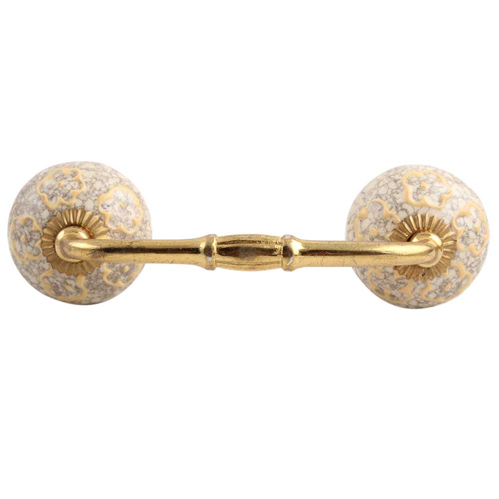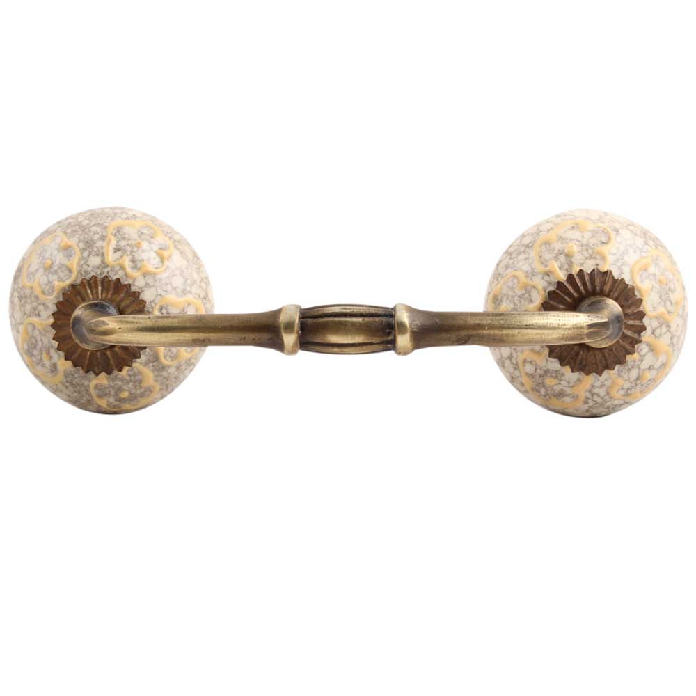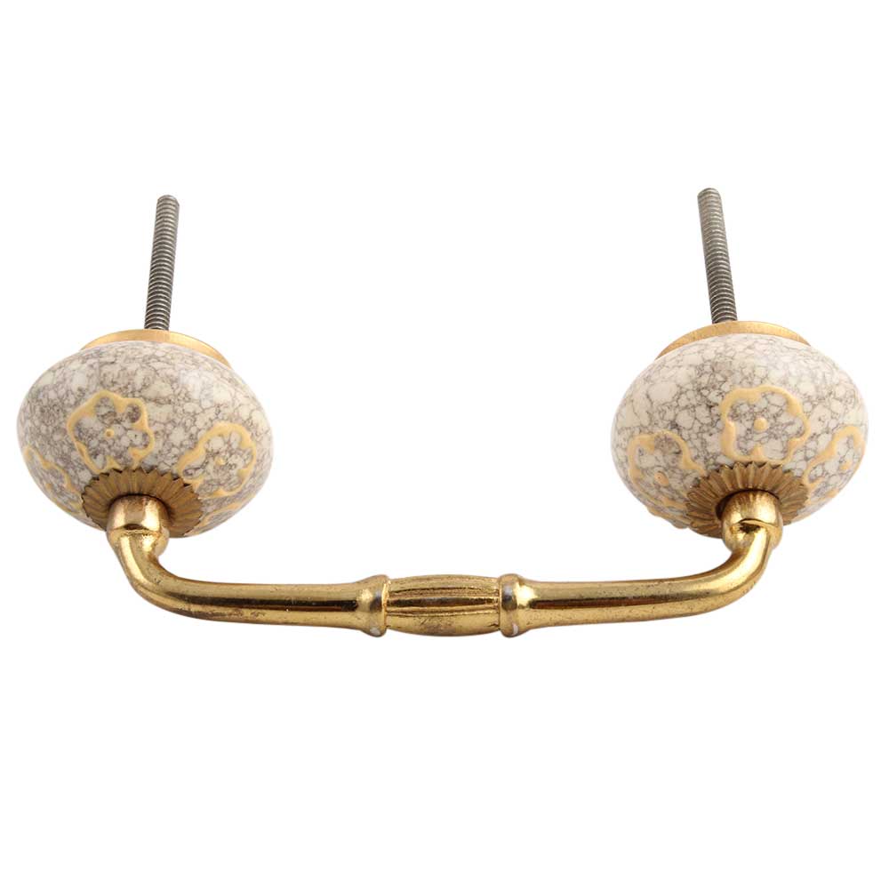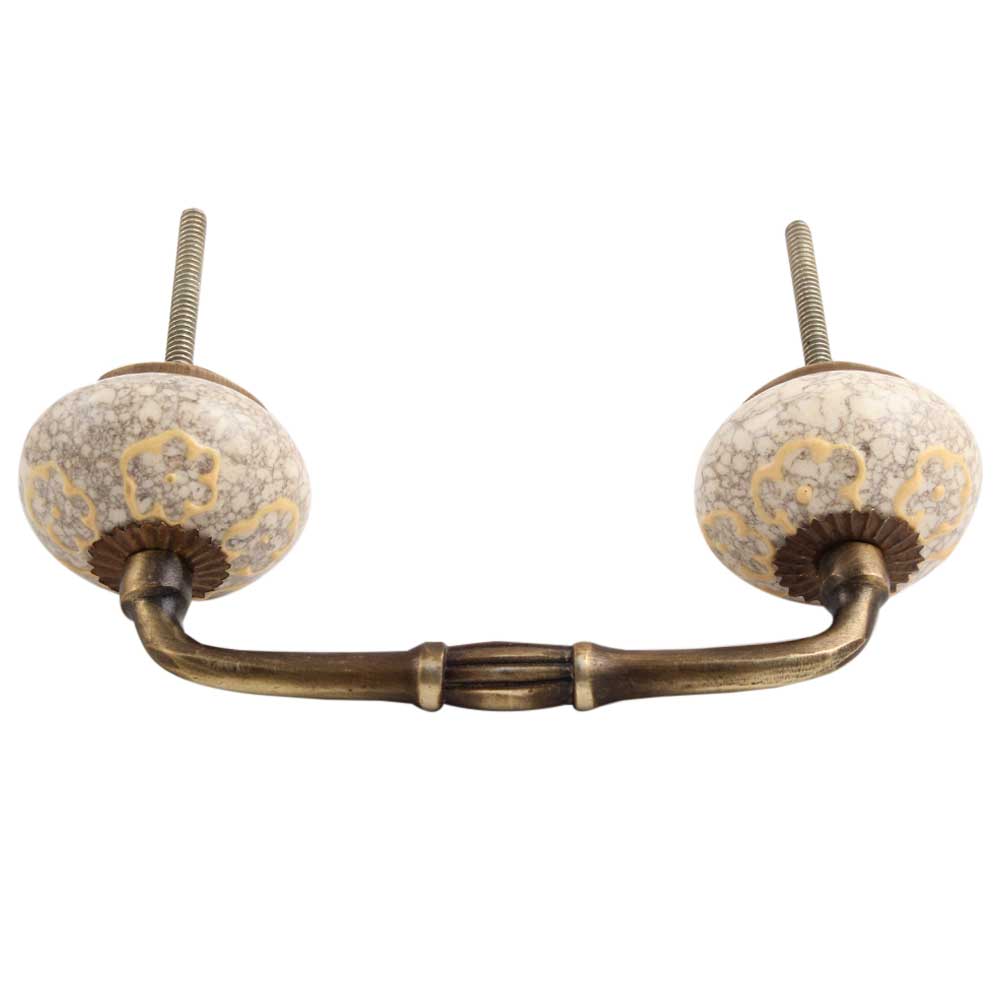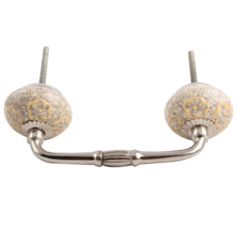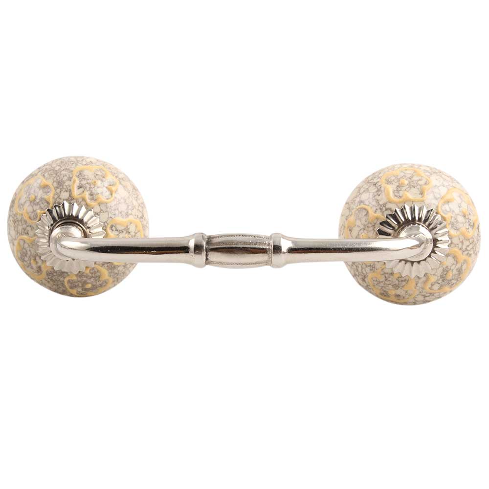 Light Yellow Floral Crackle Ceramic Bridge Handle. Ideal for Drawer, Dresser, Cabinet, Wardrobe, Cupboard and Almirah etc.