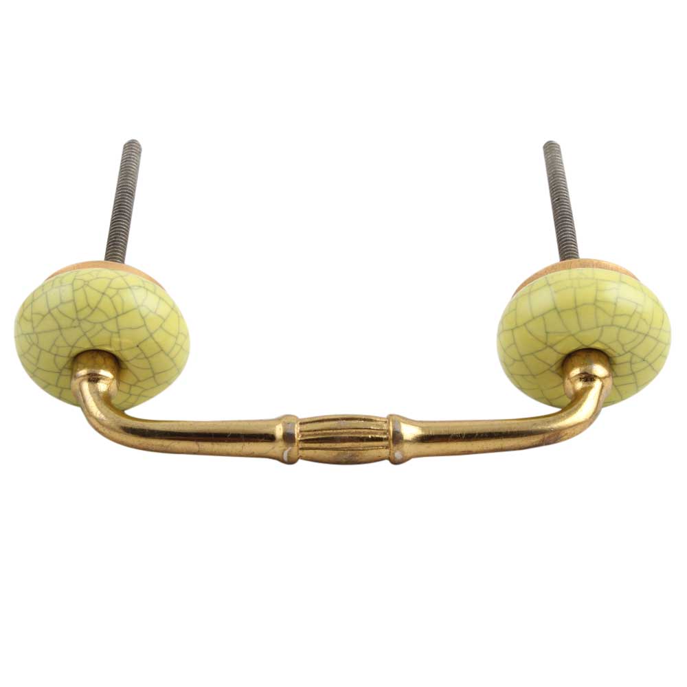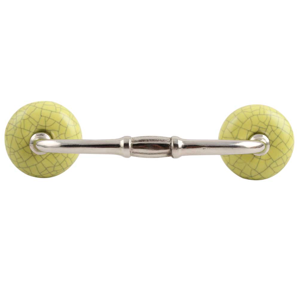 Lime Crackle Ceramic Bridge Handle. Ideal for Drawer, Dresser, Cabinet, Wardrobe, Cupboard and Almirah etc.