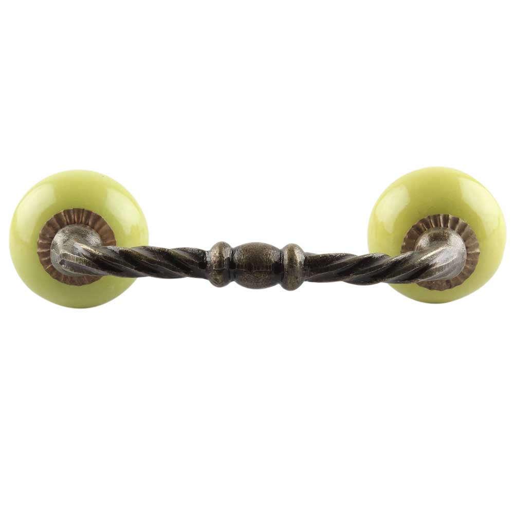 Lime Green Ceramic Cut Bridge Handles . Ideal for Drawer, Dresser, Cabinet, Wardrobe, Cupboard and Almirah etc.