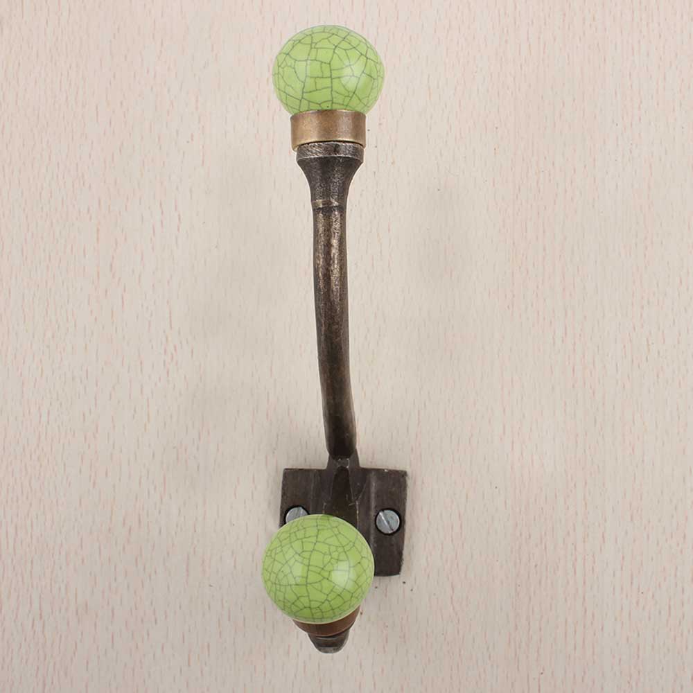 Lime Green Crackle Iron Hook-Ehg-88. When Put on Wall or Cabinet It Gives A Sturdy Look. This Hook is Strong Enough to Hold Your Cloths, Keys, Tea Cups, Coffee Mugs, Hand Towels Etc.