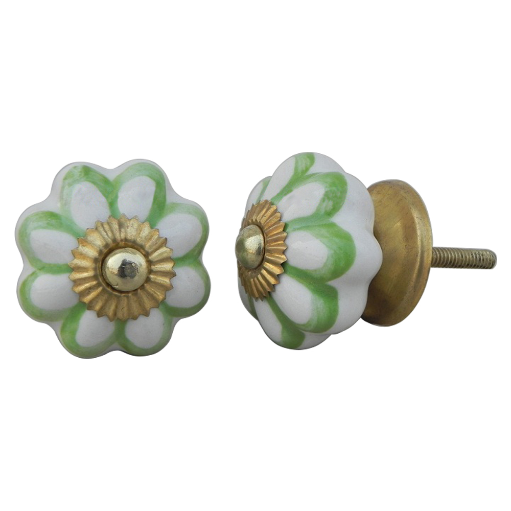 Lime Green Sunflower Medium Melon Ceramic knob. Ideal for kitchen cabinets, kitchen drawers, dining room, bed room, chest drawers, dressing tables, almirah