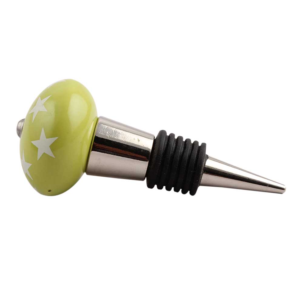 Lime Green Star Ceramic Wine Stopper.zinc alloy wine bottle stopper with attractive Jute Bag Packaging.