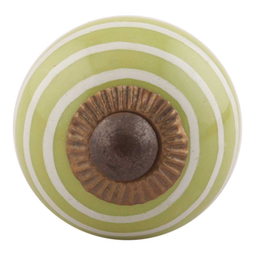 Lime Green Striped Small Ceramic Cabinet Knobs. Ideal for Drawer, Dresser, Cabinet, Wardrobe, Cupboard and almirah