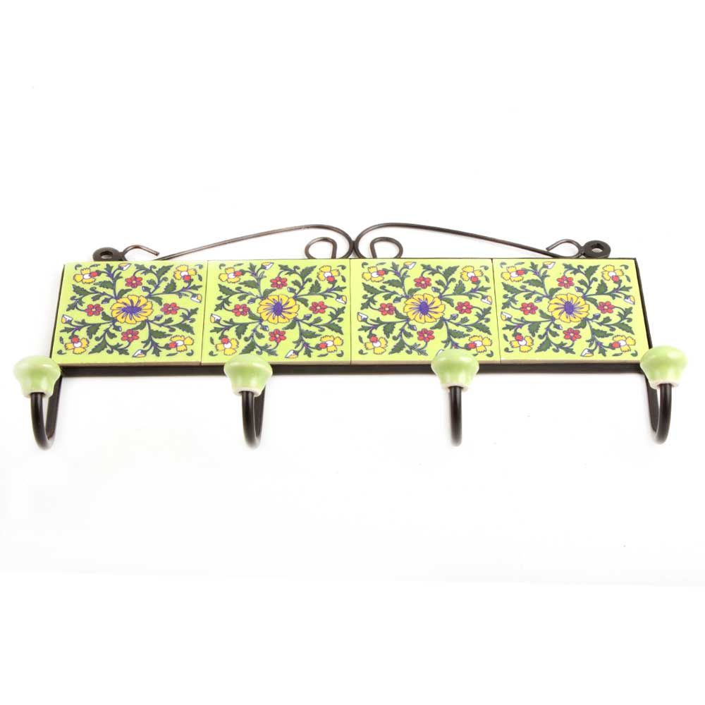Lime Green Yellow Wheel Tiles Hooks .When put on wall or cabinet it is an art in itself. The metal part of this hook is black powder coated.