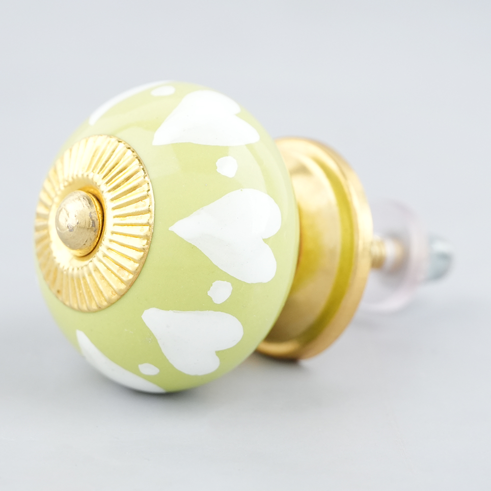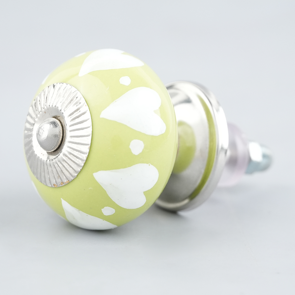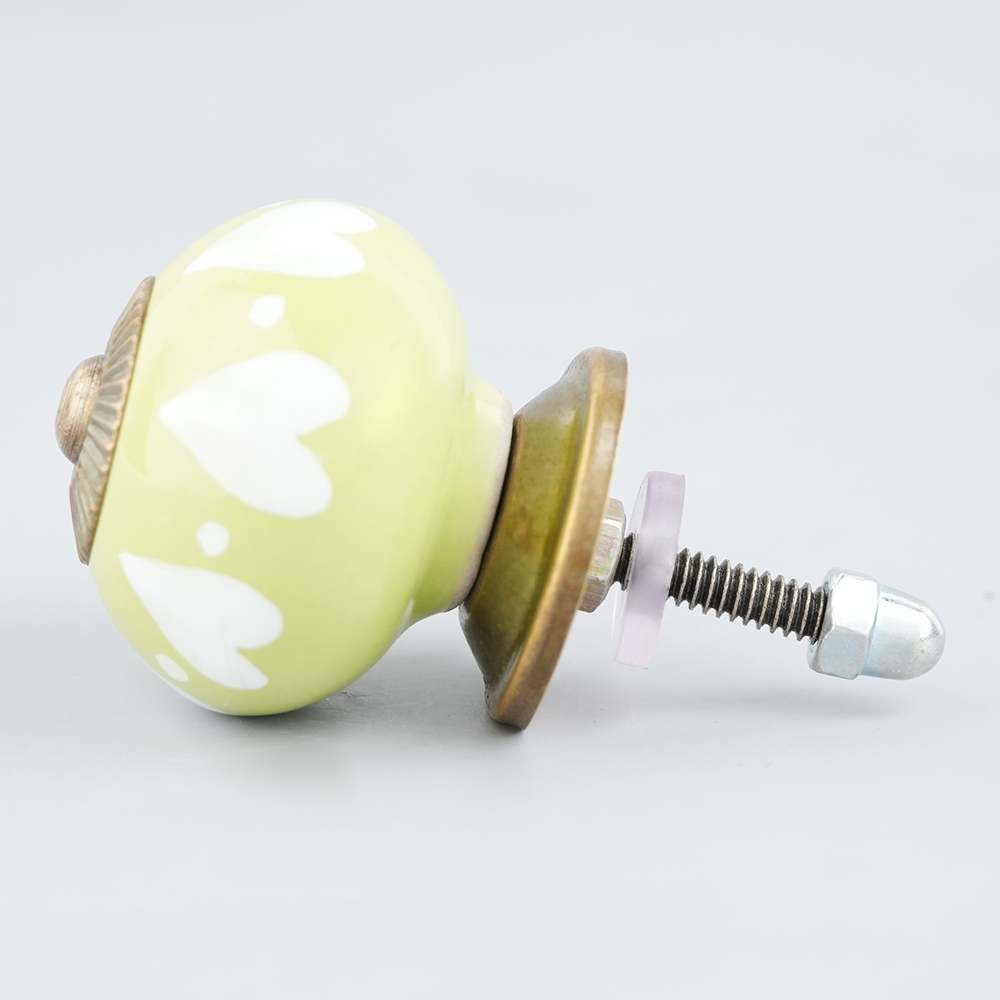Lime White Heart Ceramic Drawer Knob kitchen drawers, dining room, bed room, chest drawers, dressing tables, almirah