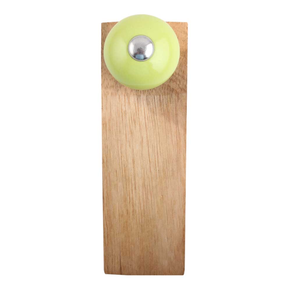 Handmade Ceramic and Wooden Door Stopper.Wooden Door Stopper with a Ceramic Knob to Carry it Easily. This Wooden Door Stopper has Glue Dots under it to Ensure that it does not Slip. It is Handmade by the Craftsmen of India and this Innovative Door Stopper won't Disappoint You.
