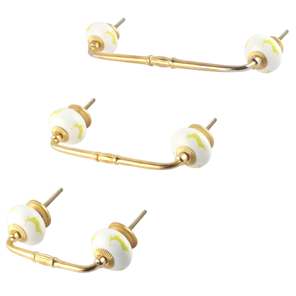 Lime Running Rein Deer Pattern Ceramic Bridge Handle. Ideal for Drawer, Dresser, Cabinet, Wardrobe, Cupboard and Almirah.