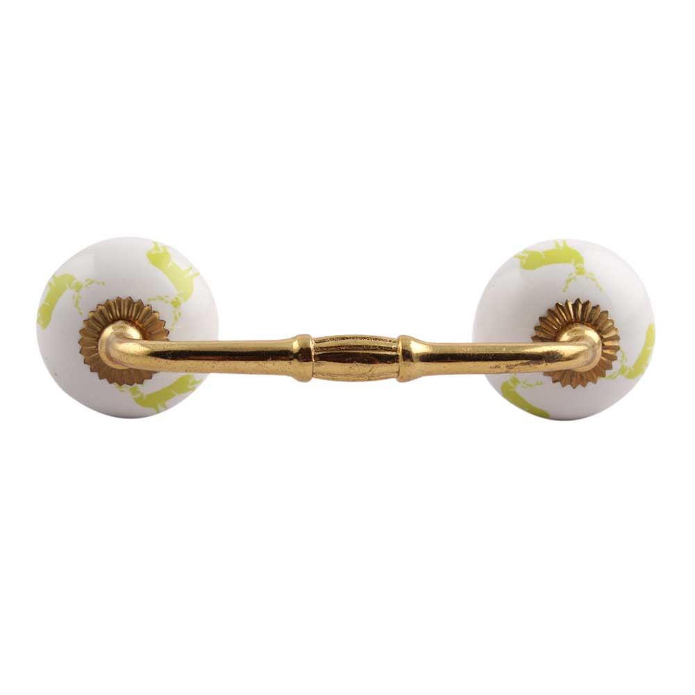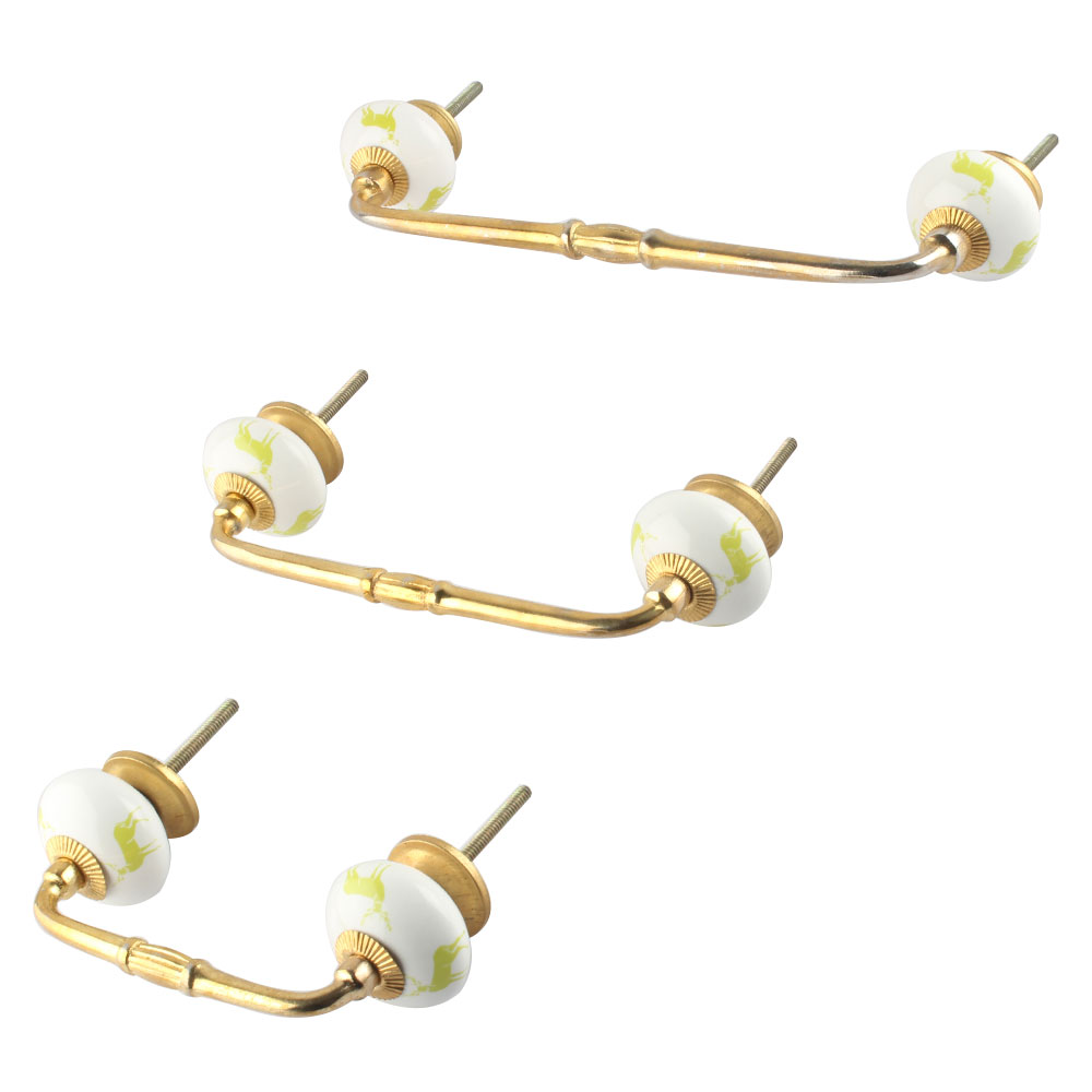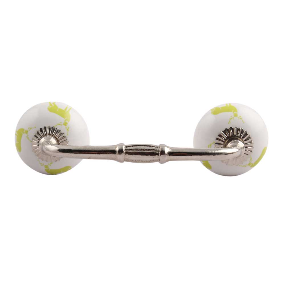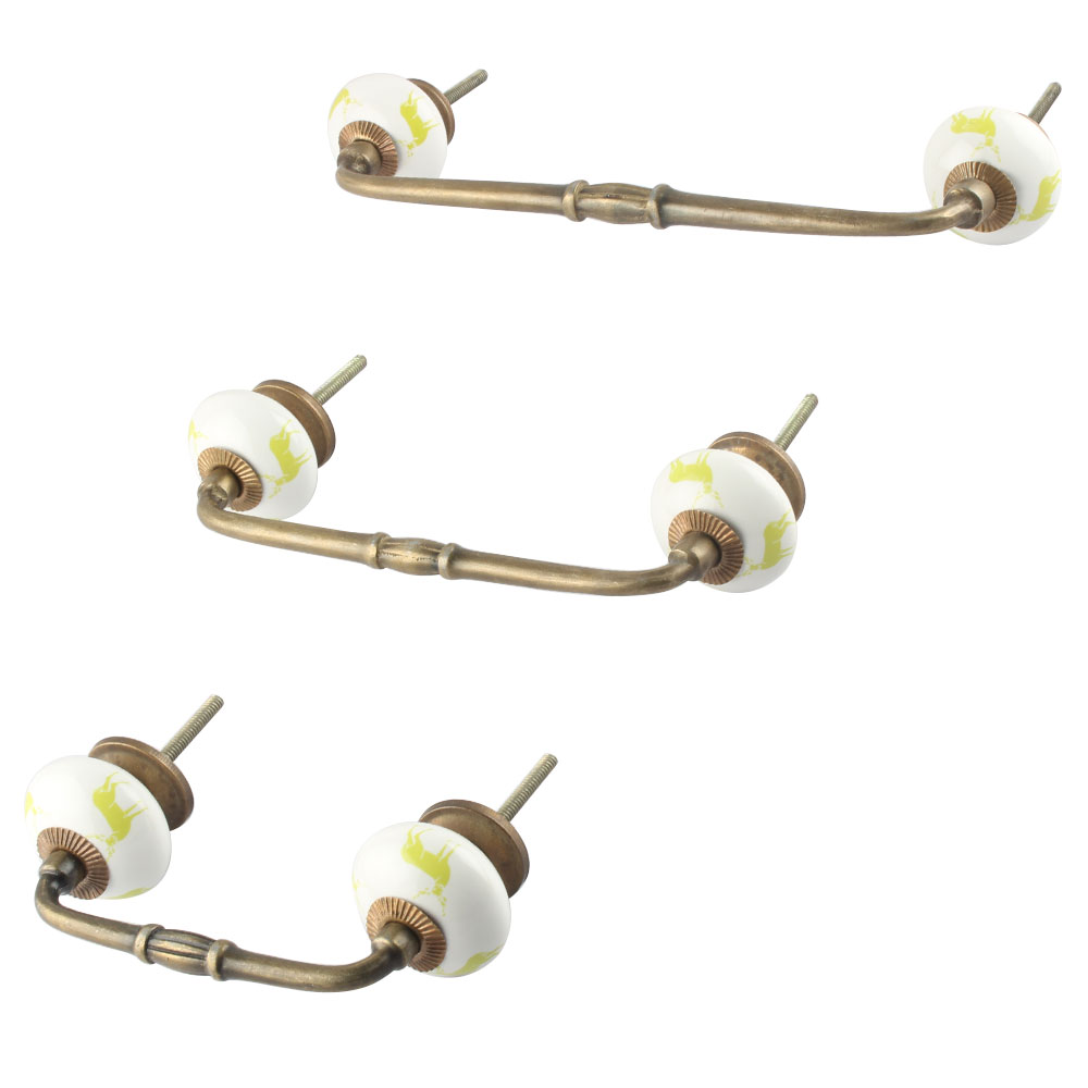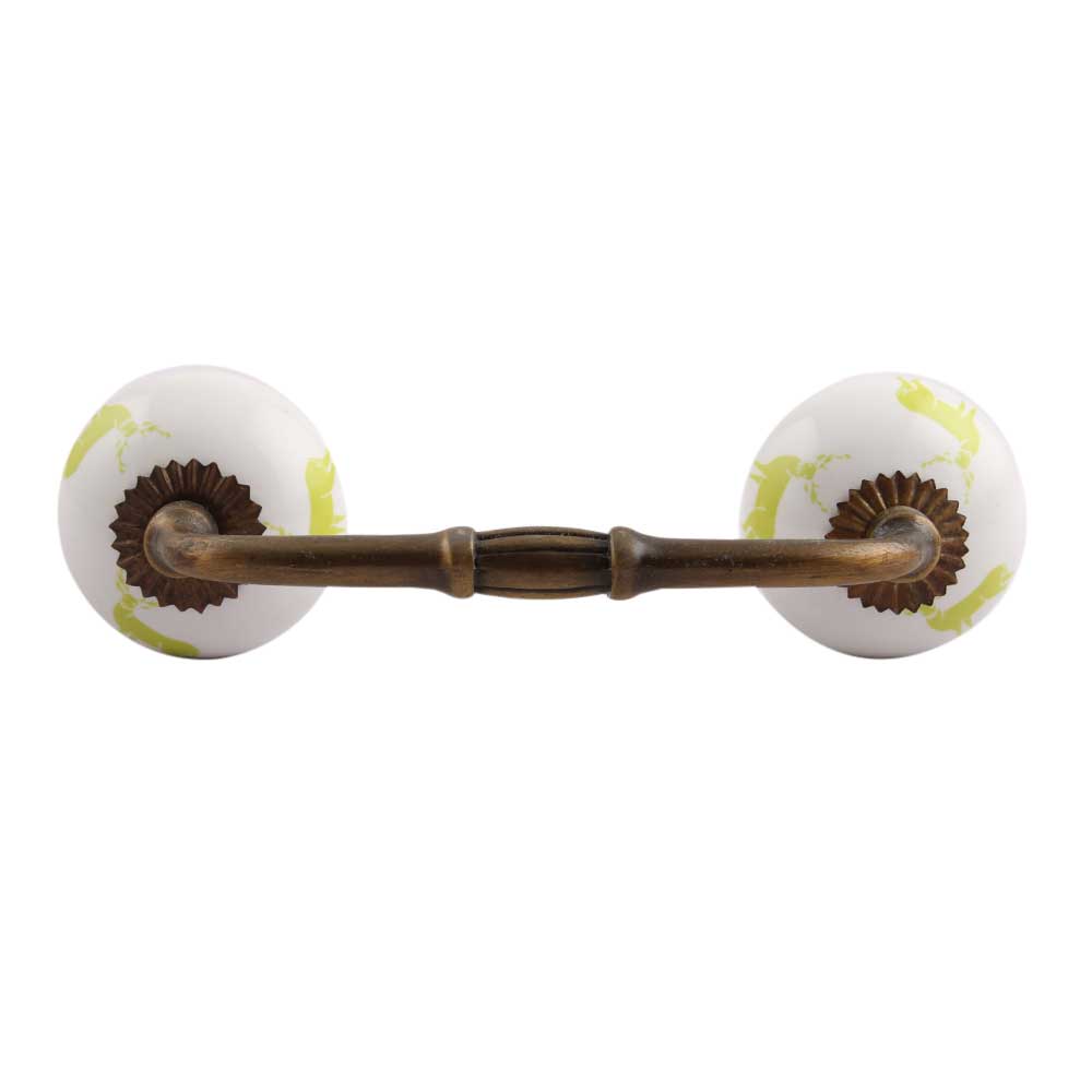 Lime Standing Rein Deer Pattern Ceramic Bridge Handle. Ideal for Drawer, Dresser, Cabinet, Wardrobe, Cupboard and Almirah.