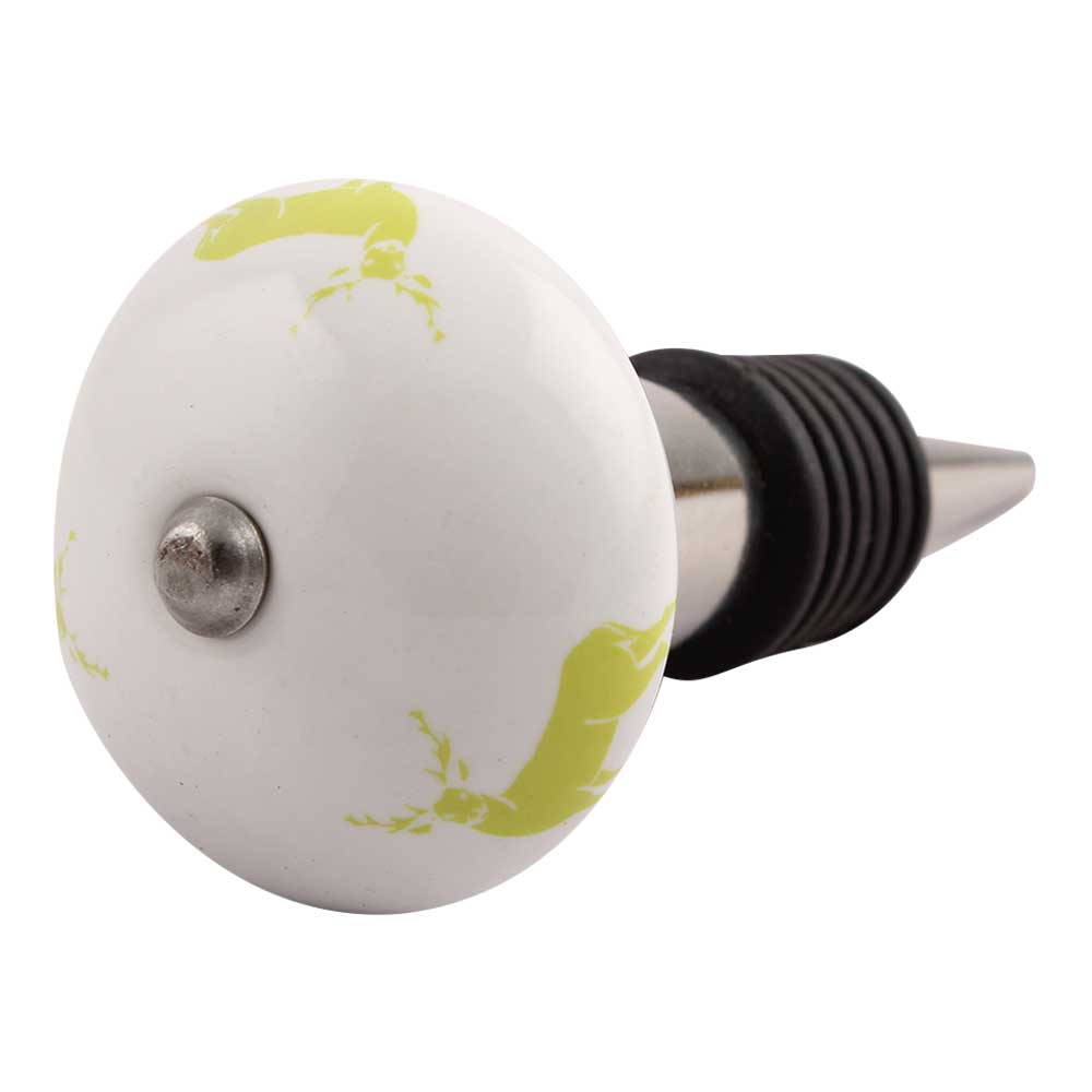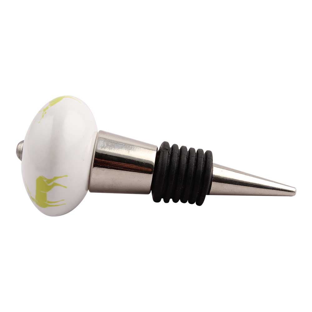 Lime Standing Rein Deer Pattern Ceramic Wine Stopper.zinc alloy wine bottle stopper with attractive Jute Bag Packaging.