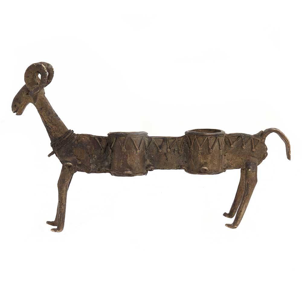 Tribal Brass Long Goat Animal twin incense as well as candle holder used as a table display, home decoration, table display at home office, hotels and clubs, wedding gift, Christmas gift and house warming gift.
