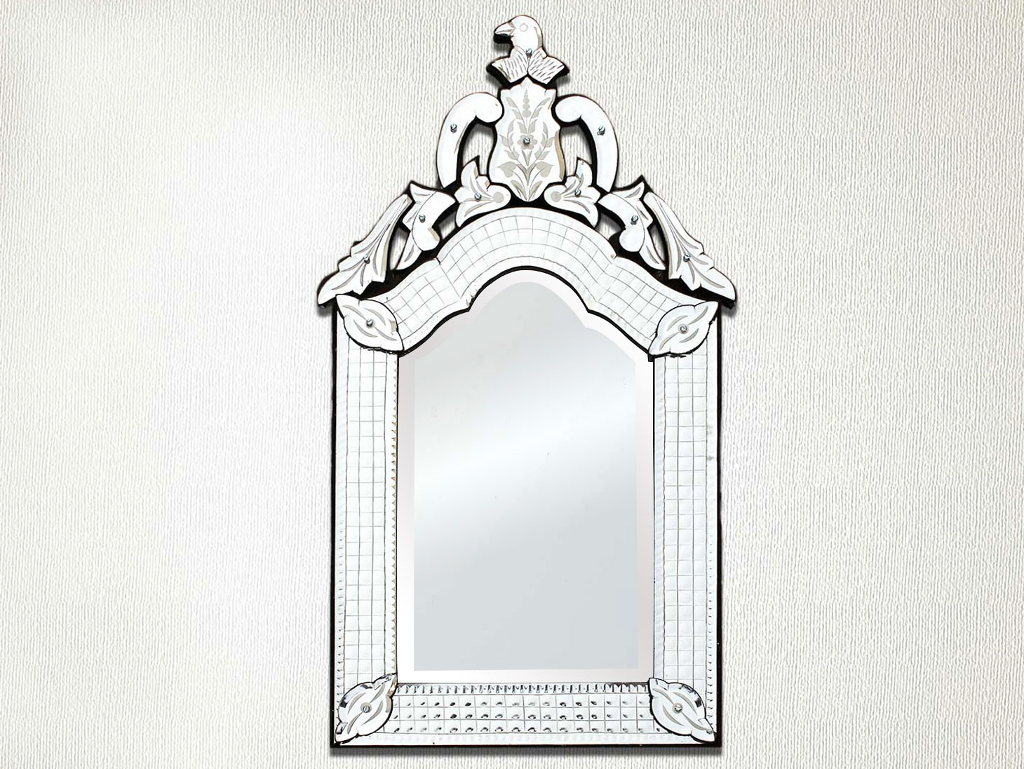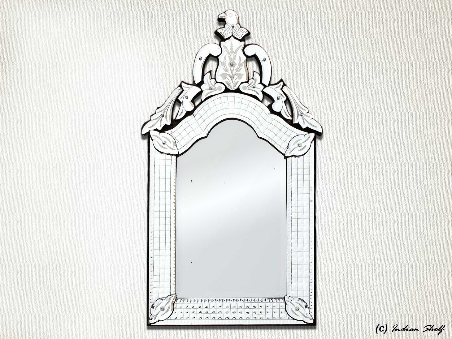 Long Venetian Mirror-25. inches X 12.5 inches.A simple way to incorporate an elegant look into any room is the addition of Venetian mirrors these treasured pieces reflect light and serve as an artistic focal point transforming a room into a glamorous environment with a bit of old world elegance.