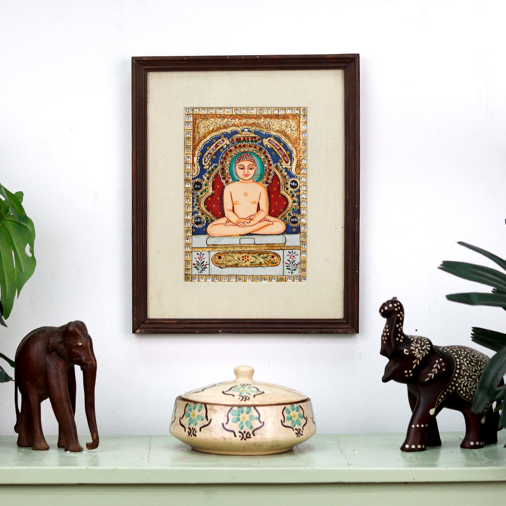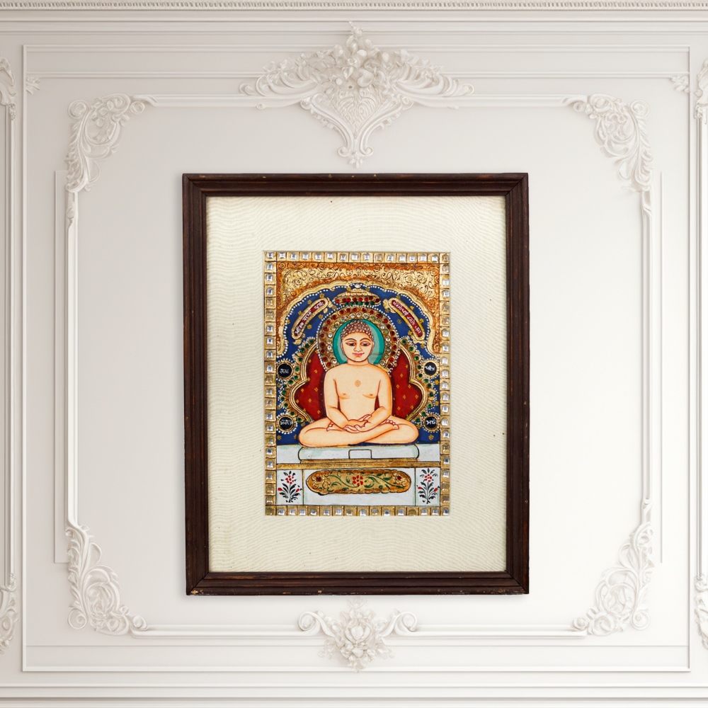 Prepare to be mesmerized by the captivating beauty of this Tanjore painting work featuring the serene visage of Lord Buddha. Crafted with unparalleled skill and attention to detail, this stunning piece promises to transport you to a realm of tranquility and spiritual contemplation. As you gaze upon the divine features of Lord Buddha, you'll be enveloped in a sense of peace and inner reflection. This Tanjore painting work is more than just a decorative piece; it's a gateway to a deeper understanding of the teachings of the Enlightened One, inspiring you to cultivate mindfulness and find solace in the wisdom of the ages. Whether you're a devoted follower of Buddhism or simply someone who appreciates the beauty of traditional Indian art, this Tanjore painting work will captivate and inspire you. Elevate your living space with the captivating artistry of this stunning Lord Buddha portrait, and let its timeless elegance infuse your home with a sense of tranquility and enlightenment.