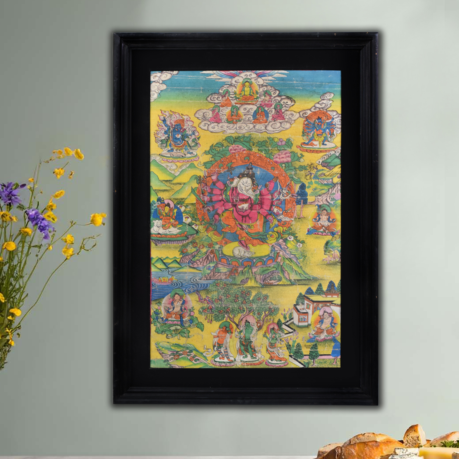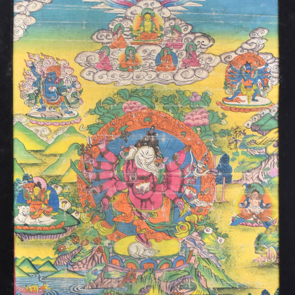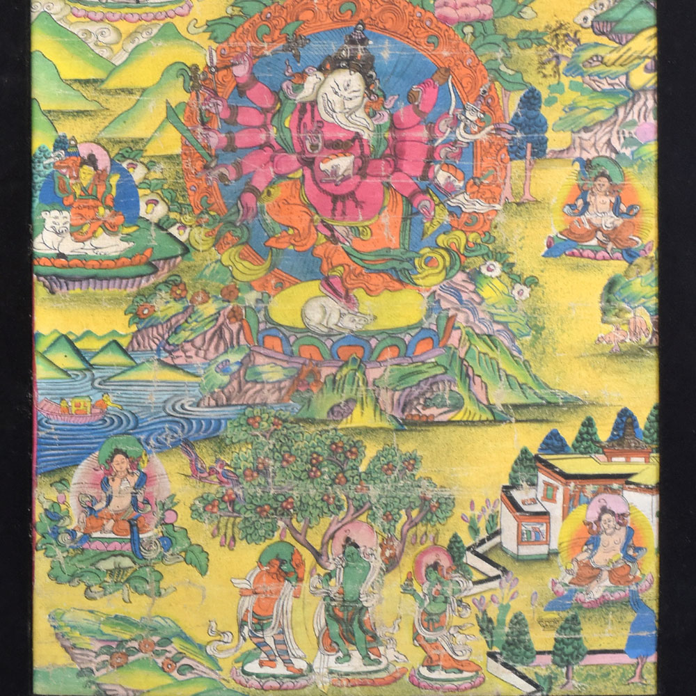 Invite the blessings and transformative power of Lord Ganesha into your life with this stunning vintage Thangka painting. Crafted with meticulous attention to detail, this artwork showcases the beloved elephant-headed deity in all his majestic glory, inviting you to connect with the essence of this revered figure. As the remover of obstacles and bringer of prosperity, Lord Ganesha's presence in your home will inspire you to embrace new opportunities and overcome life's challenges with confidence and grace. The vibrant colors and intricate details of this Thangka painting, created using time-honored Tibetan techniques, will captivate your senses and transport you to a realm of sacred beauty and spiritual enlightenment. Whether you're a devoted follower of Hinduism or simply seeking to infuse your space with the transformative energy of this iconic deity, this Ganesha Thangka will become a cherished centerpiece in your home. Display it with pride and let its radiant presence fill your space with a sense of harmony, wisdom, and divine protection.