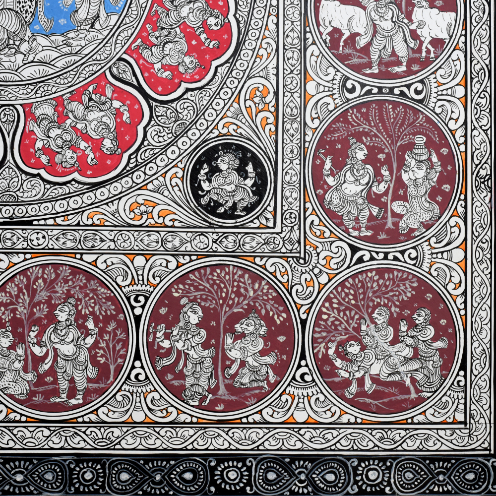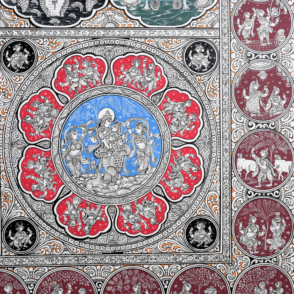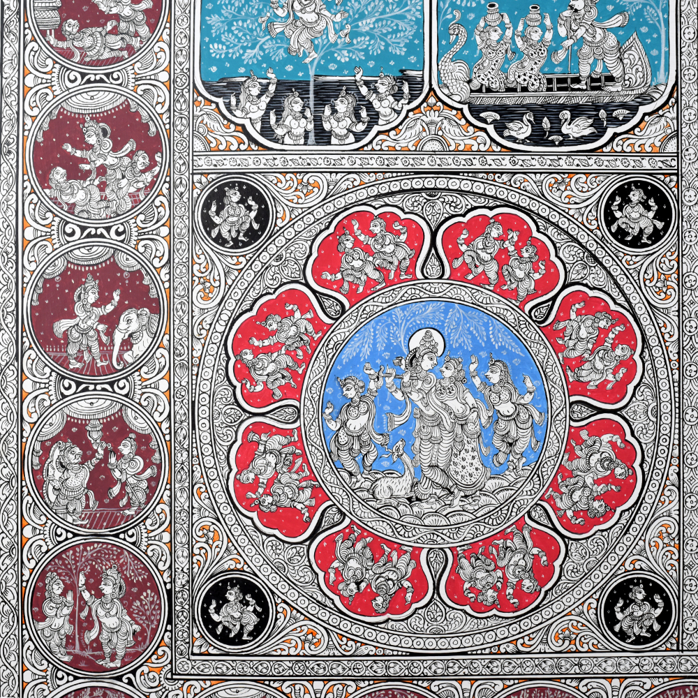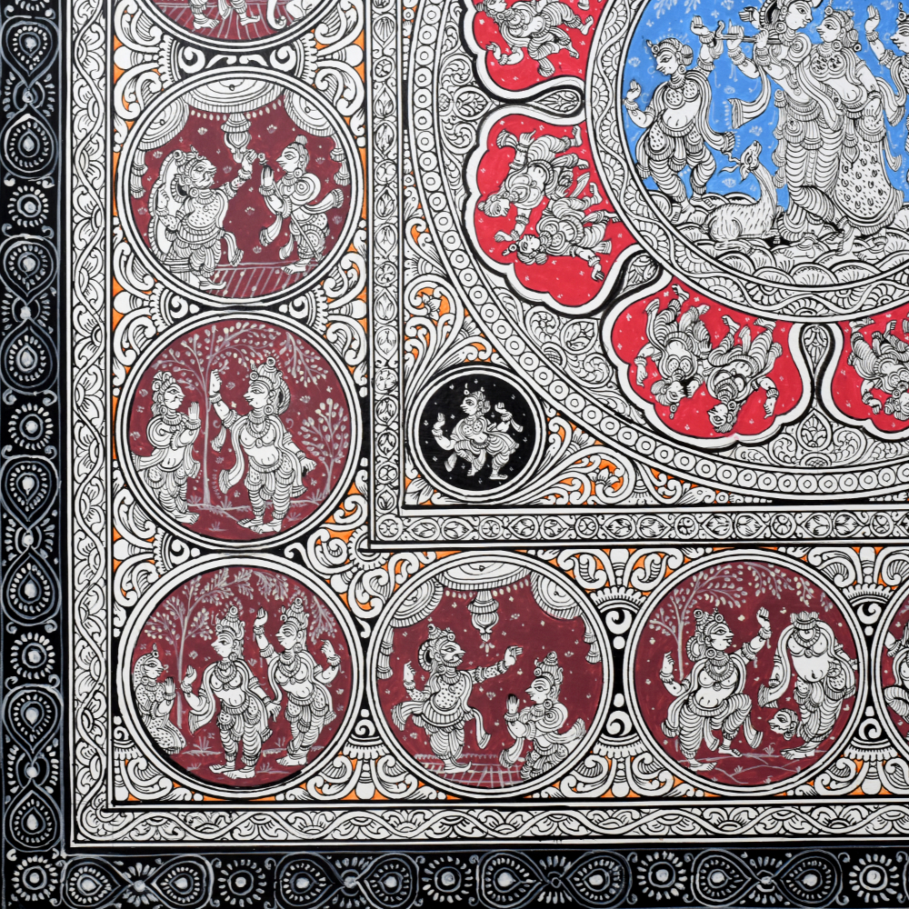 Lord Krishna's Leela Pattachitra Painting on Cloth Paper for Home Decor