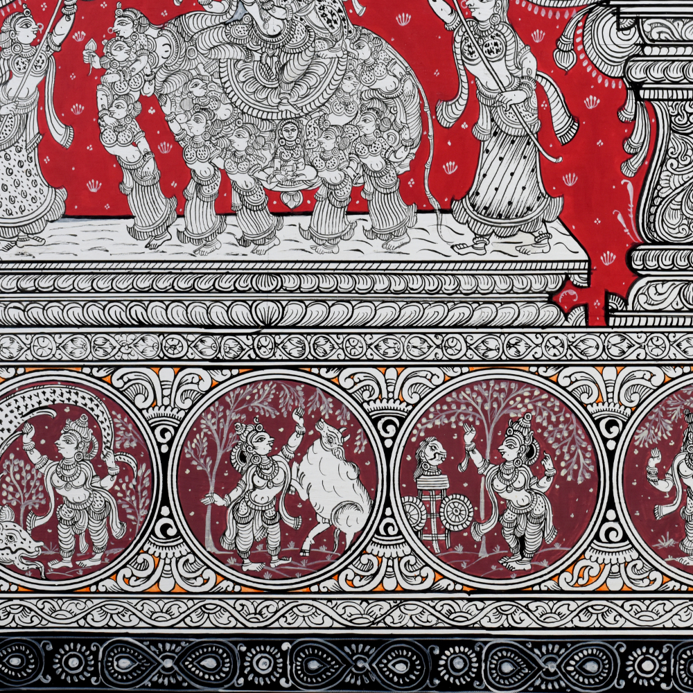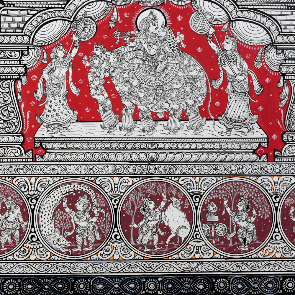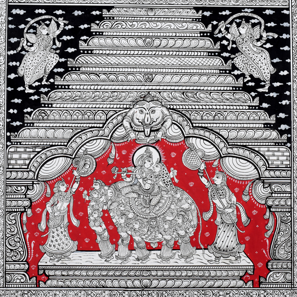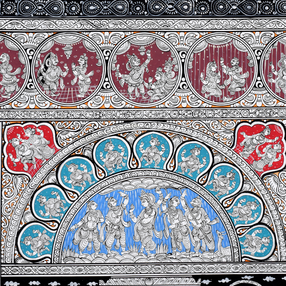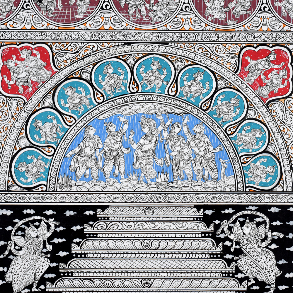 Lord Krishna's Leela Pattachitra Painting on Cloth Paper for Home Decor